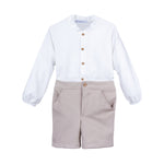 Con questo completo per bambini di CALAMARO, il tuo piccolo sarà elegante e comodo. Il soffice bermuda in panno e la camicia in caldo cotone con chiusura a bottoncini di legno sono perfetti per un look casual chic. Un must-have per ogni genitore esperto!