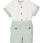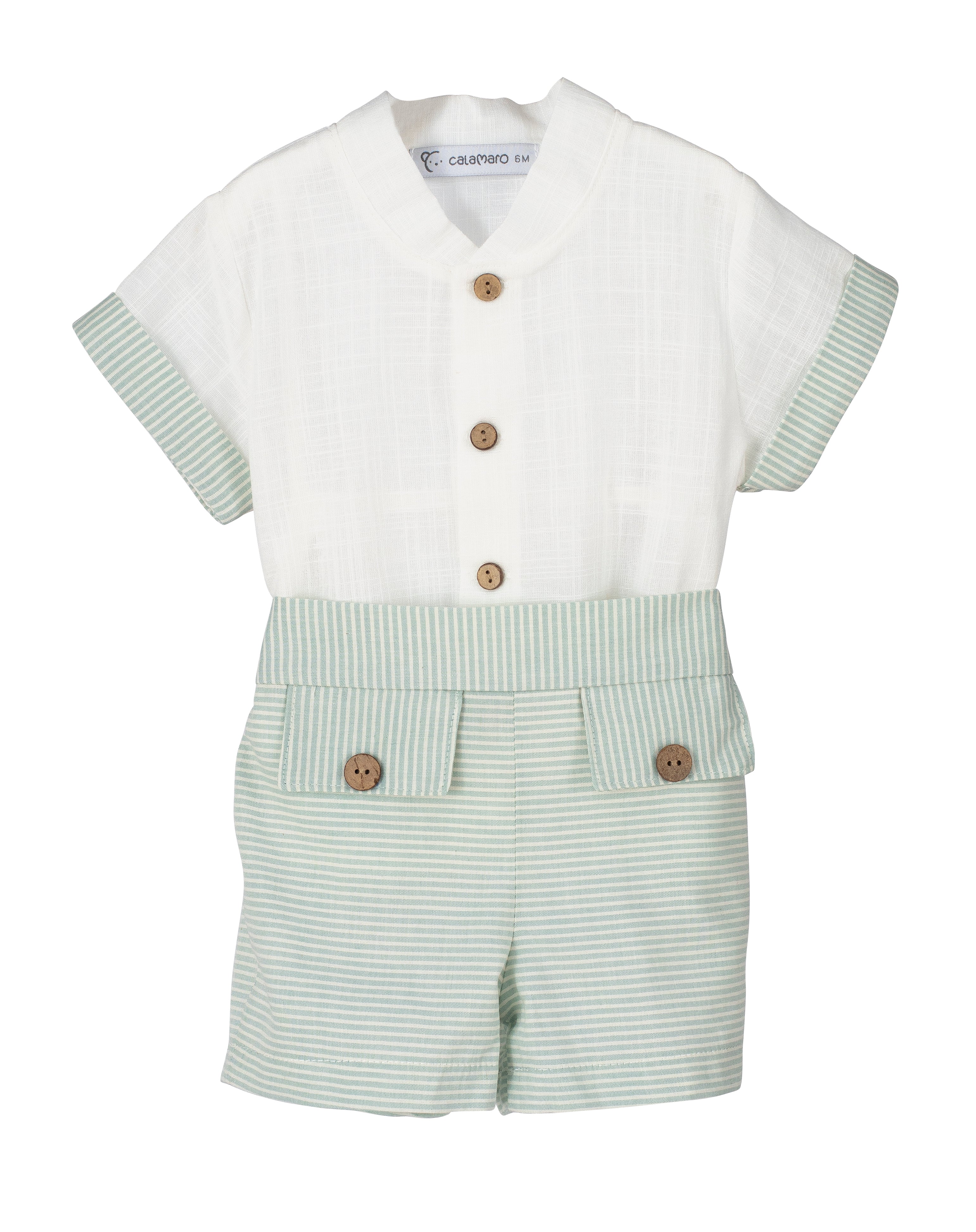 Questo completo bambino CALAMARO comprende una bermuda e una camicia mezza manica con collo pistagnina. Elegante e casual allo stesso tempo, perfetto per un look chic per il tuo piccolo. Confortevole e alla moda grazie ai tessuti di alta qualità e al design raffinato.