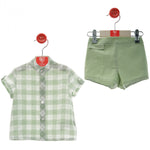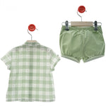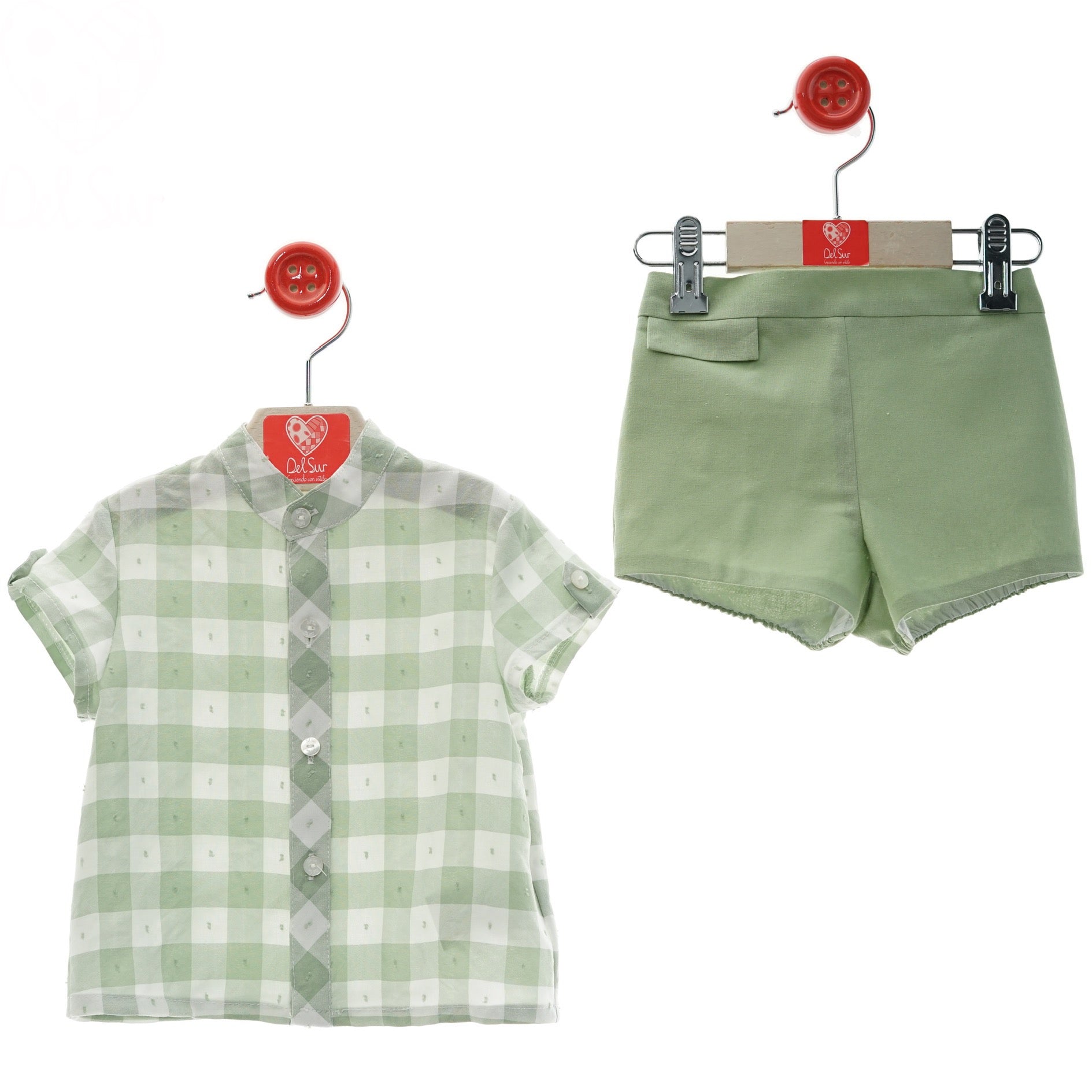 Questo completo è perfetto per il tuo neonato! Con bermuda in cotone verde tinta unita, la camicia a quadri mezza manica con collo coreano è elegante e alla moda, adatto per ogni occasione. Del Sur è il marchio di fiducia per vestire il tuo piccolo con stile e comfort.