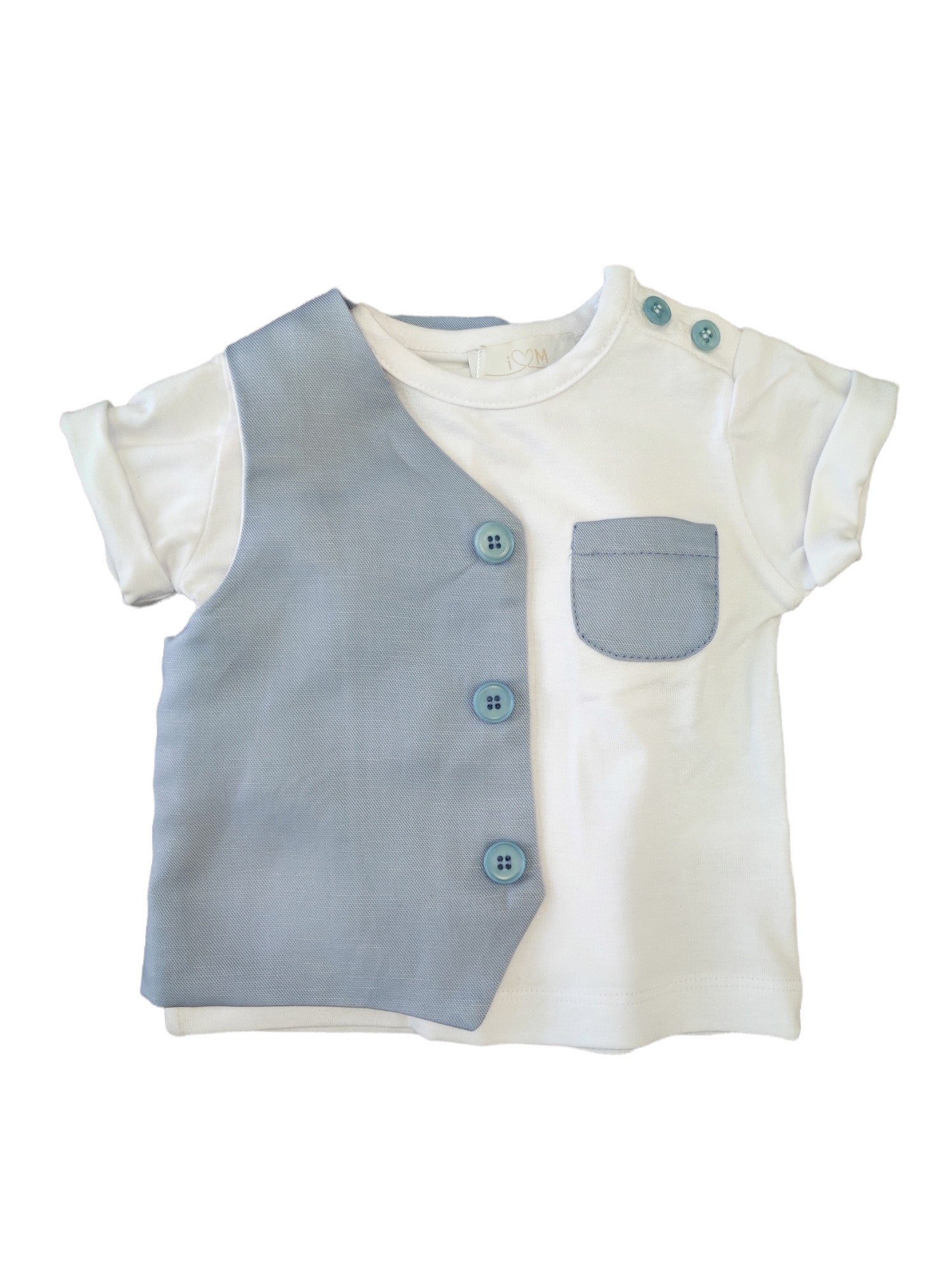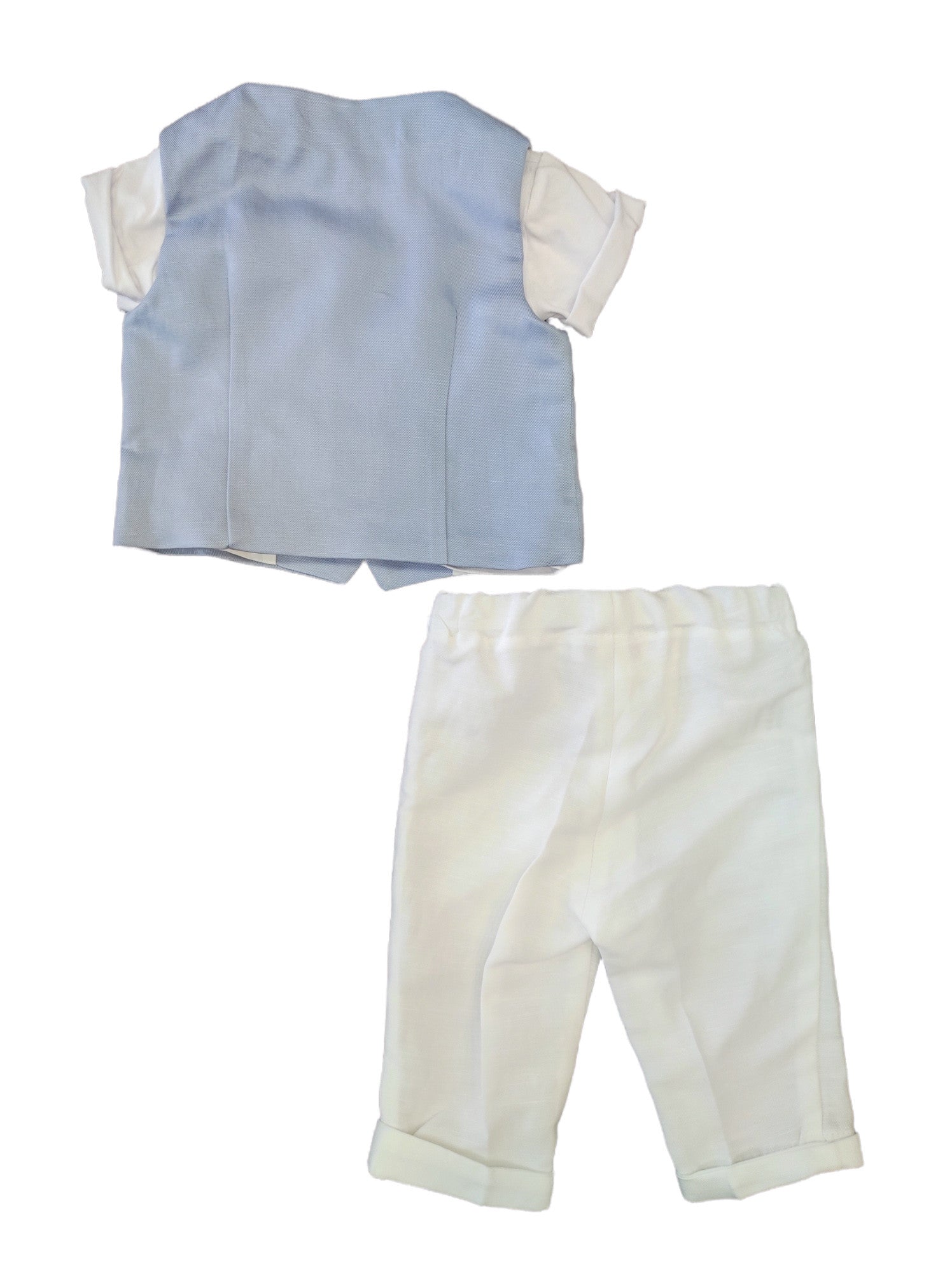 Completo Con Pantalone Shirt E Panciotto Bianco Celeste Neonato ISABEL 2303 - ISABEL - LuxuryKids