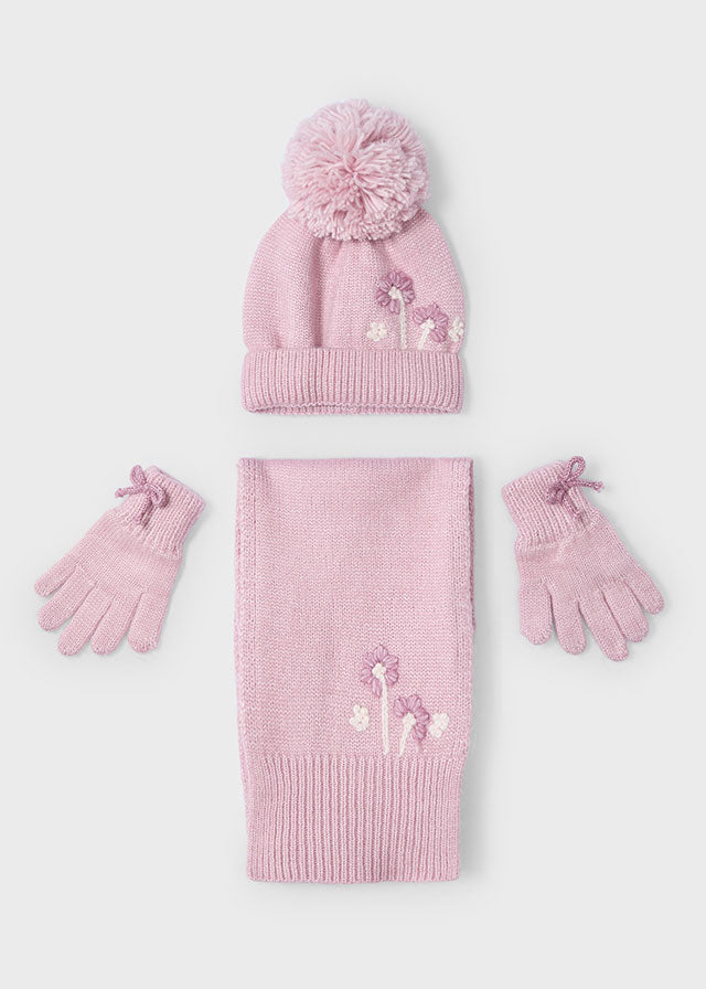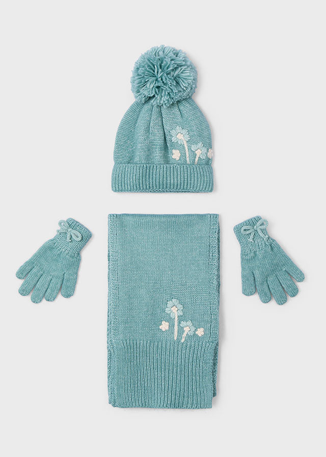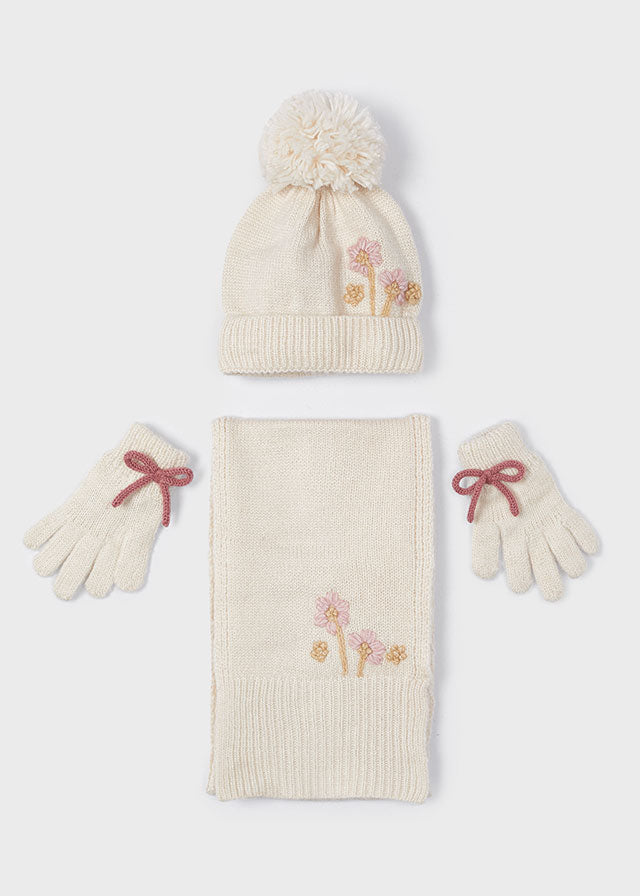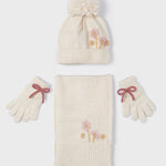 Questo completo per bambina della MAYORAL è elegante e alla moda. Include un cappello, una sciarpa e guanti per tenere al caldo la tua bambina durante l'inverno. Confortevole e di alta qualità, questo completo è perfetto per un look sofisticato e protetto dal freddo.