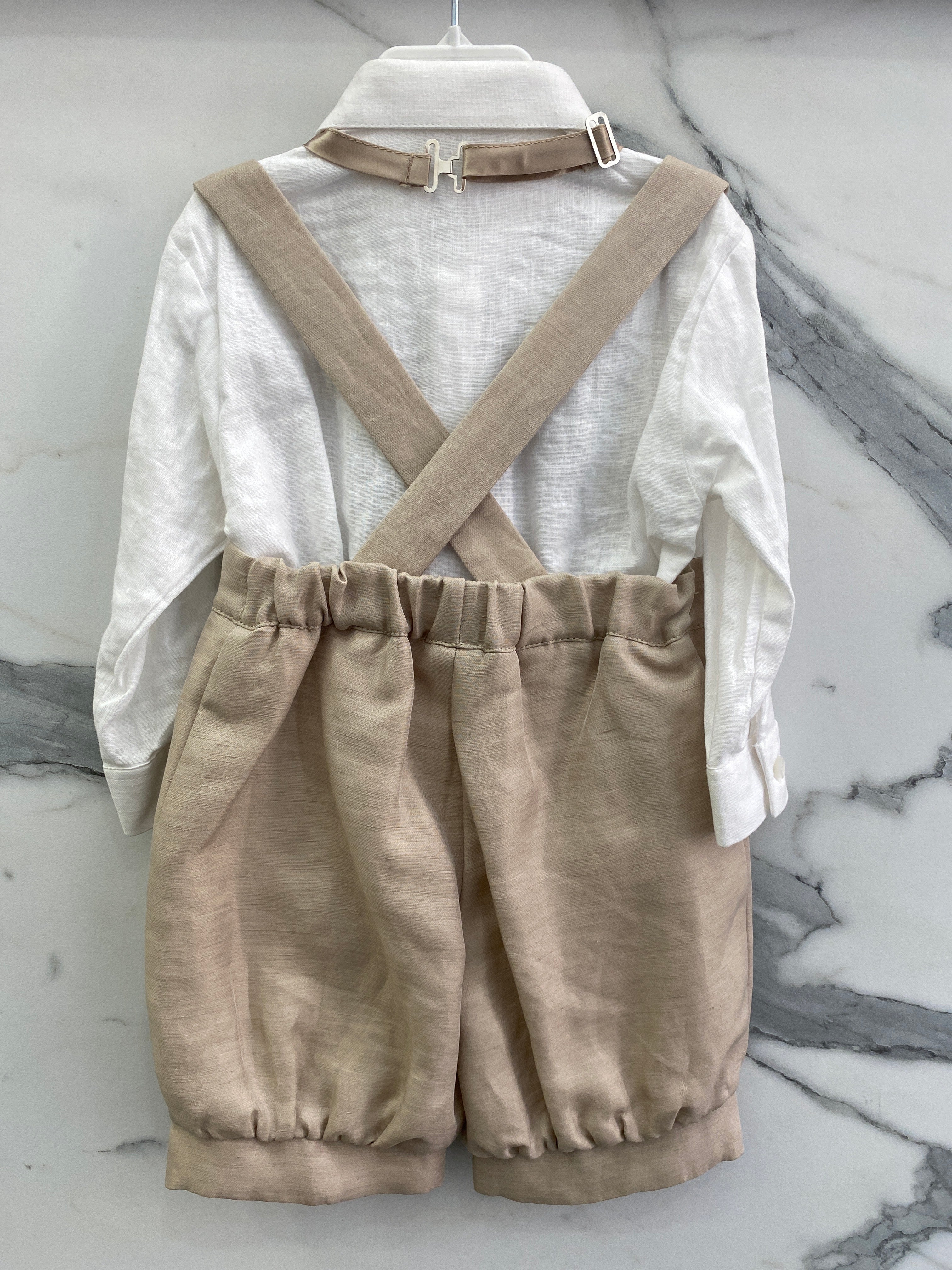 -Camicia in misto lino manica lunga, in tinta unita bianca