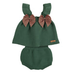Questo completo per neonata in caldo cotone unisce comfort e stile: pantaloncini e top in maglia presentano spalline arricciate e due fiocchi natalizi a quadretti vichy, perfetti per un look casual e alla moda durante le stagioni più fresche. Realizzato con materiali traspiranti, garantisce morbidezza e libertà di movimento, ideale per le piccole esploratrici.