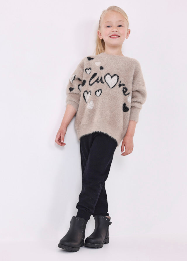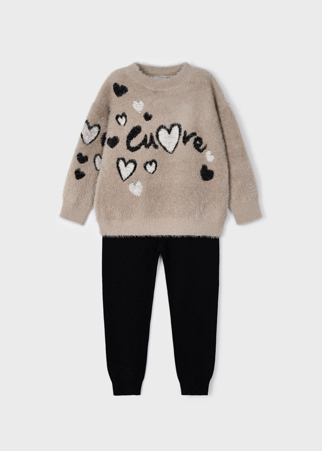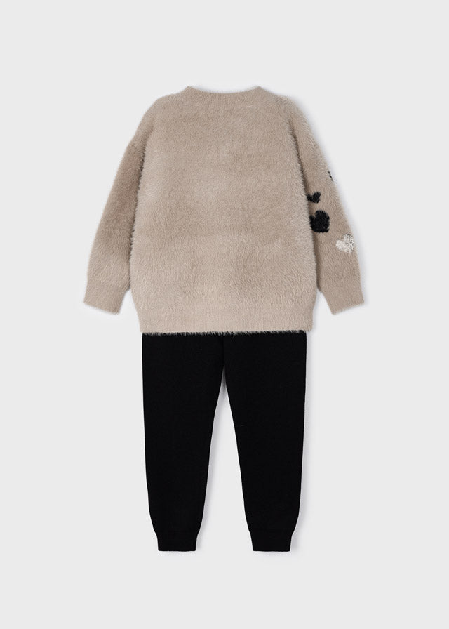 Completo tricot con leggings in tinta unita nero e felpa peluche.