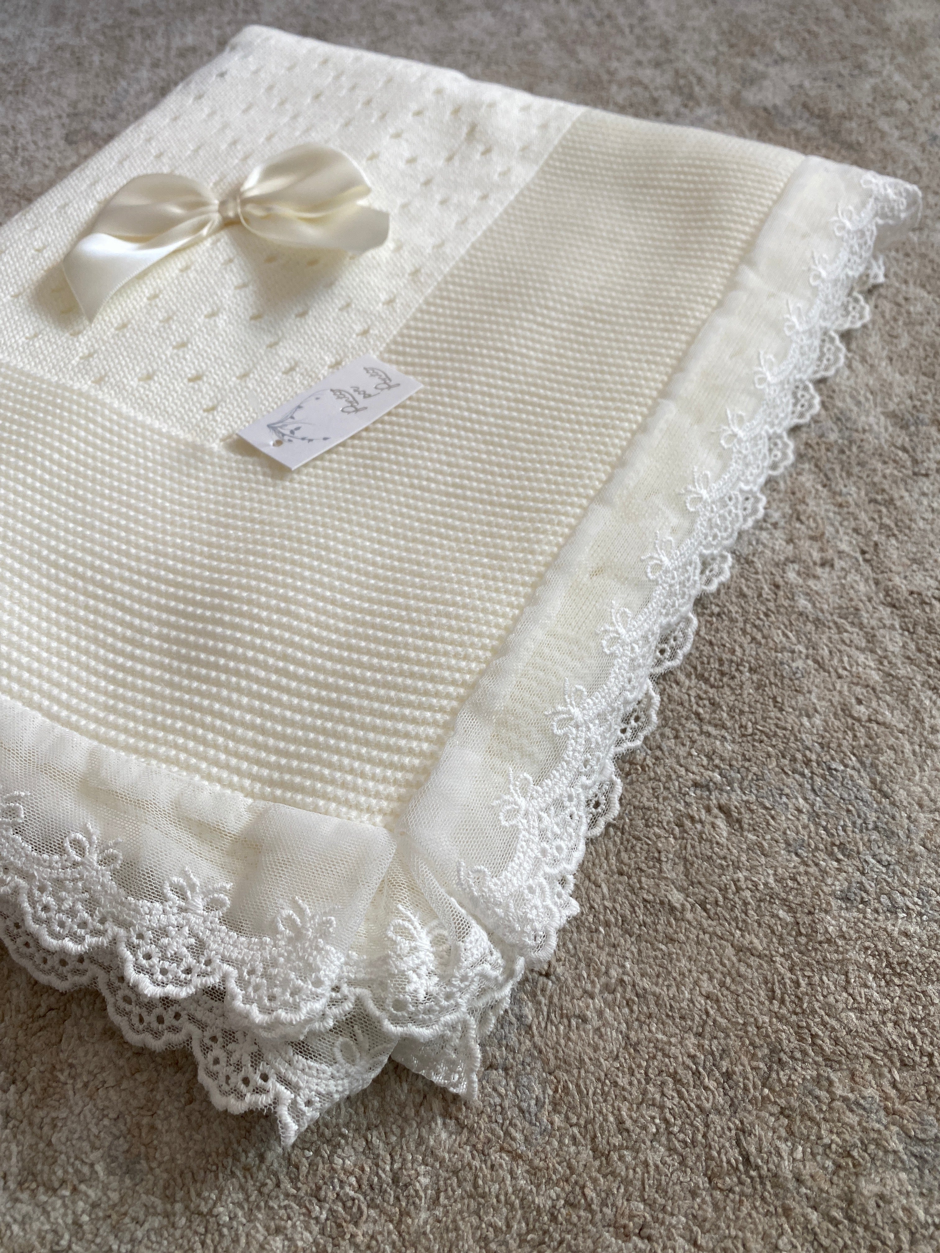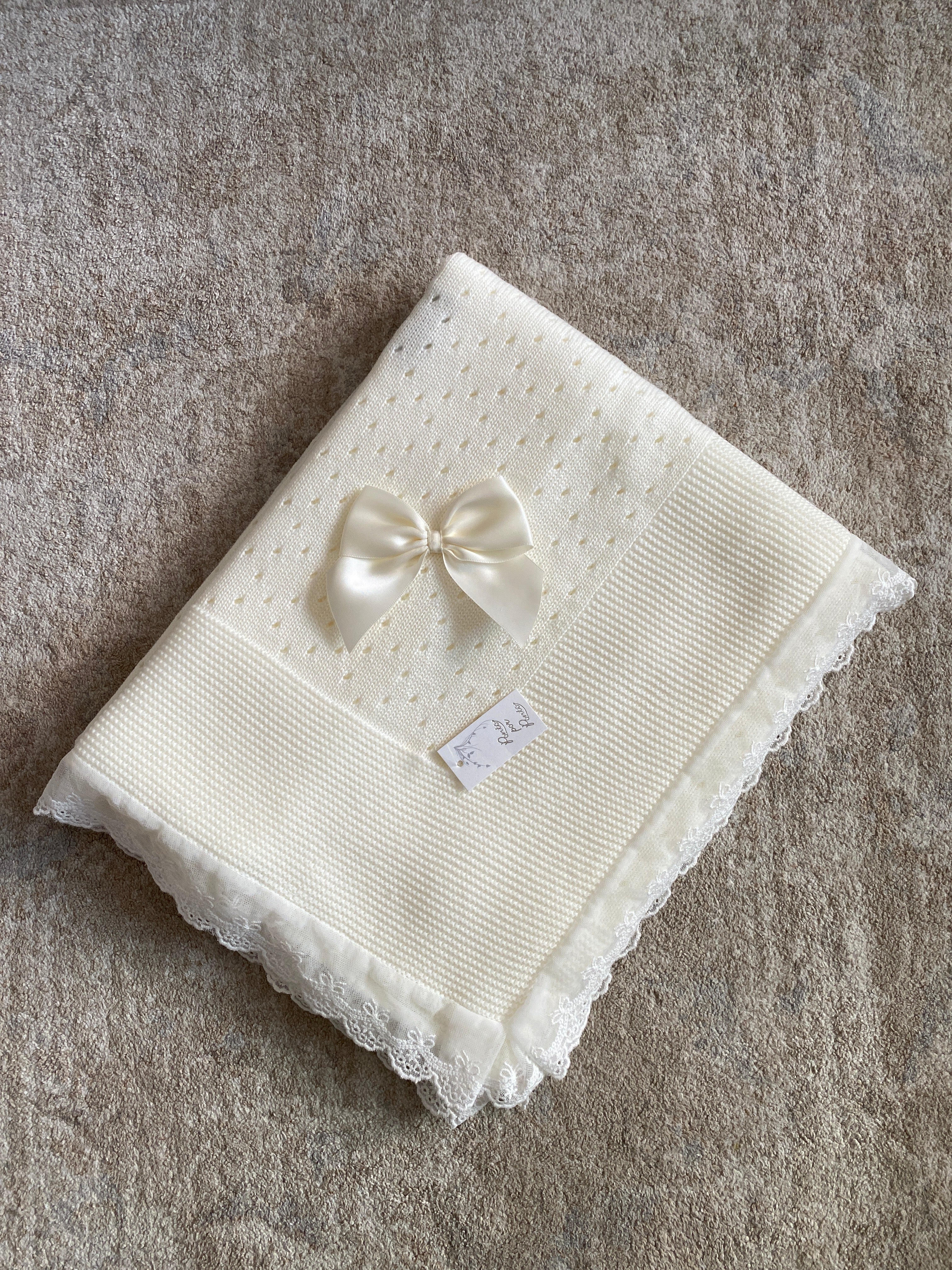 Coperta Elegante In Tessuto Anallergico e Pizzo Neonata PONTO POR PONTO 874