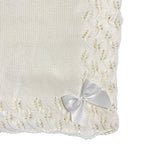 Questa coperta elegante in tessuto anallergico è la scelta ideale per la tua bambina. Con una bellissima trama sul bordo, un fiocco in raso e un design elegante, questa coperta è perfetta per il suo corredino. Assicura comfort e qualità grazie ai suoi materiali anallergici.
