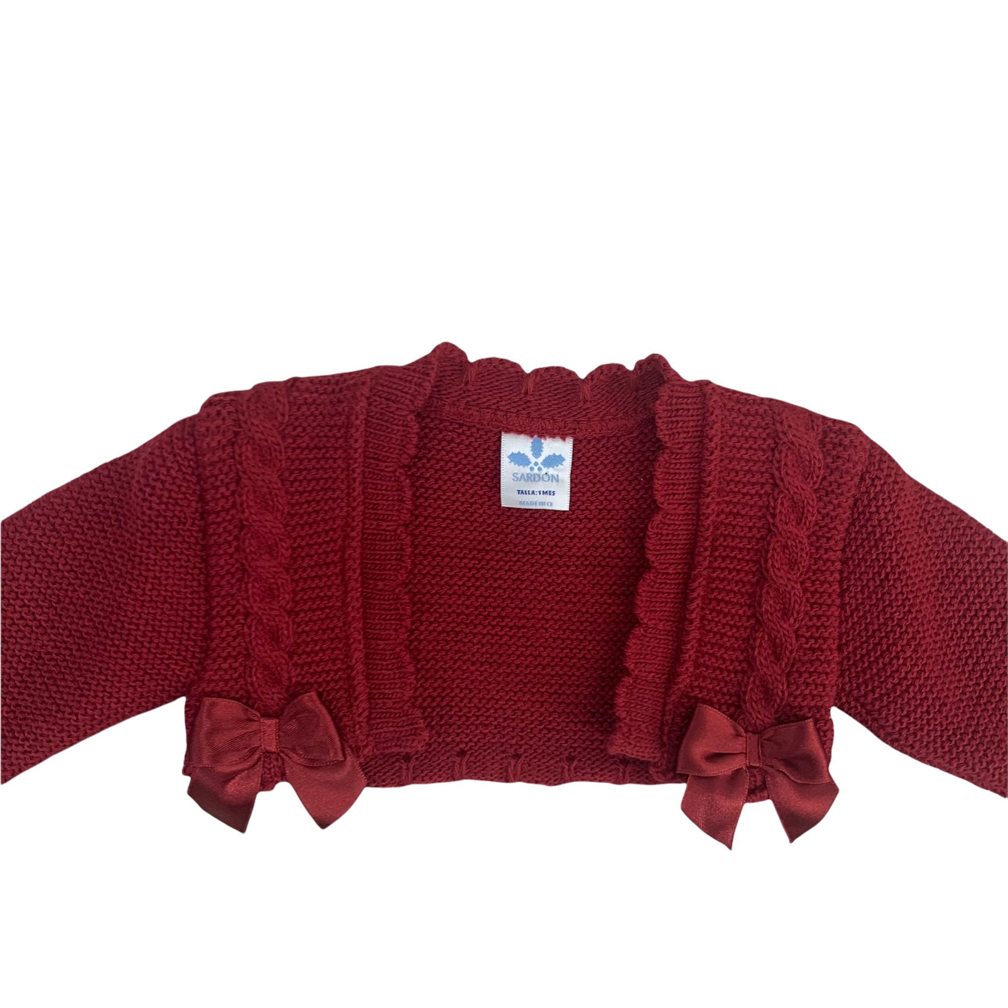 Coprispalle in caldo cotone bordeaux con trecce in raso.