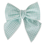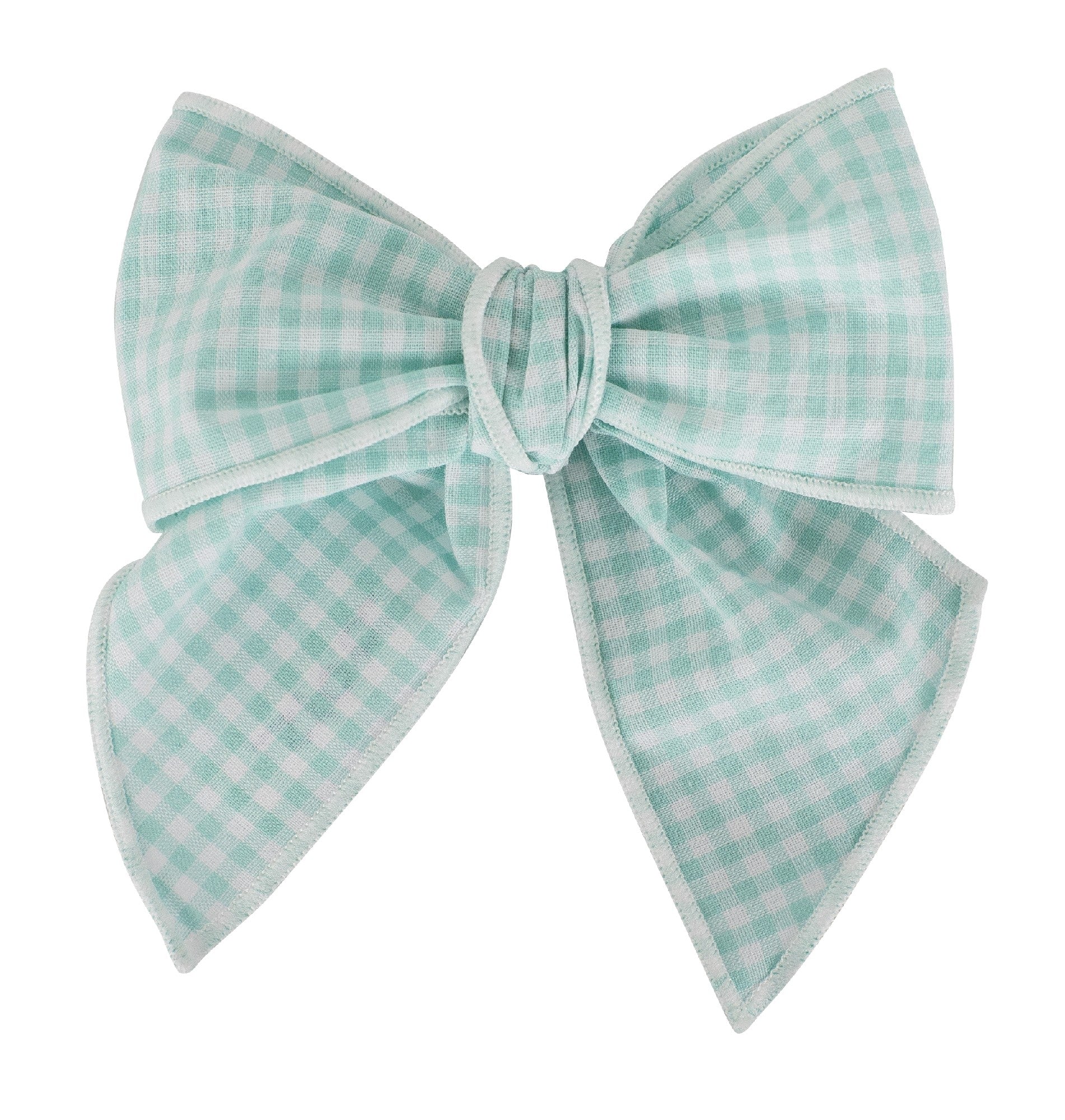 Fermaglio (becco di cicogna) con fiocchettone in cotone fantasia a quadretti verde