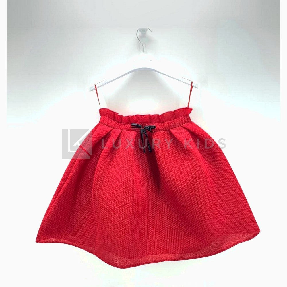 Gonna in neoprene tessuto lavorato ,piccolo fiocco in pelle e velluto centrale