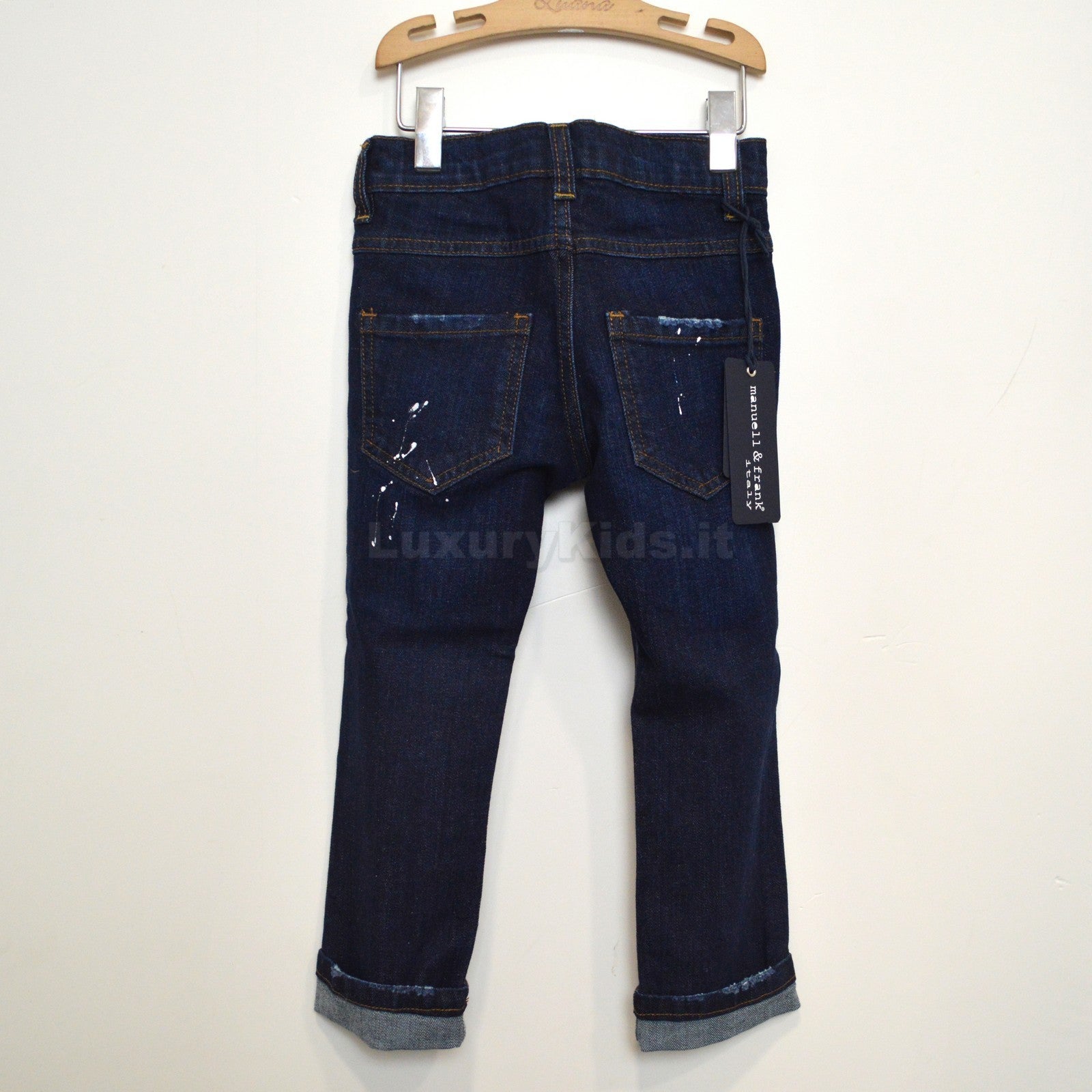 Jeans Scuro in Caldo Cotone Denim con Macchie di Pittura per Bambino Manuell&Frank MF1015B - MANUELL&FRANK - LuxuryKids