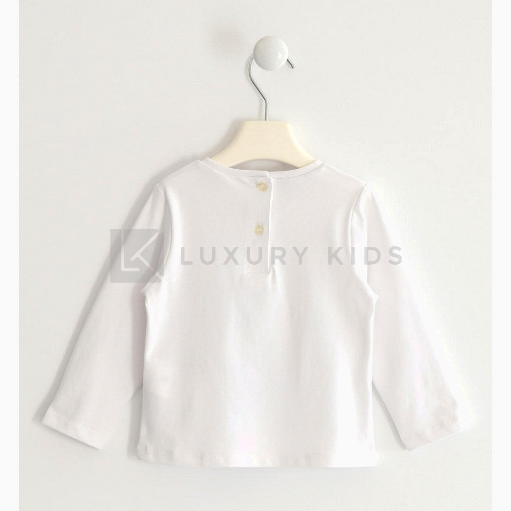Maglia Manica Lunga In Cotone Elasticizzato Bianca Con Stampa Azzurra Neonata SARABANDA J209 - SARABANDA - LuxuryKids