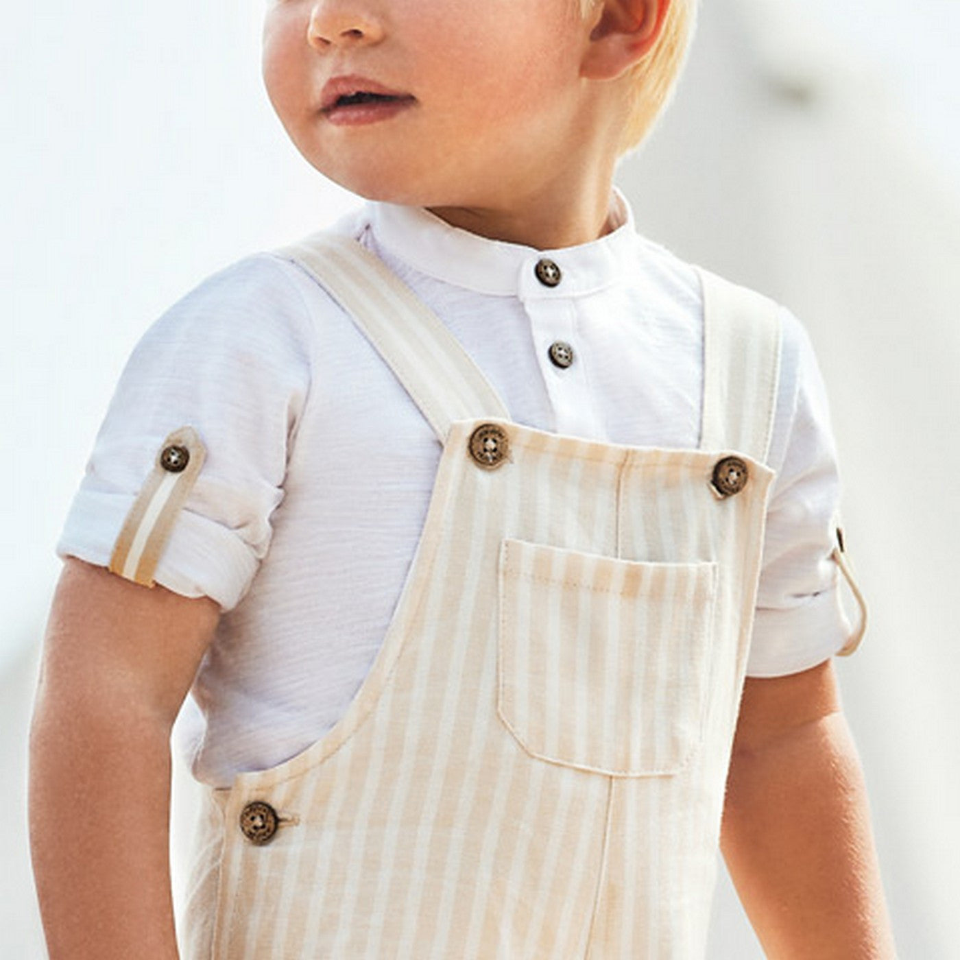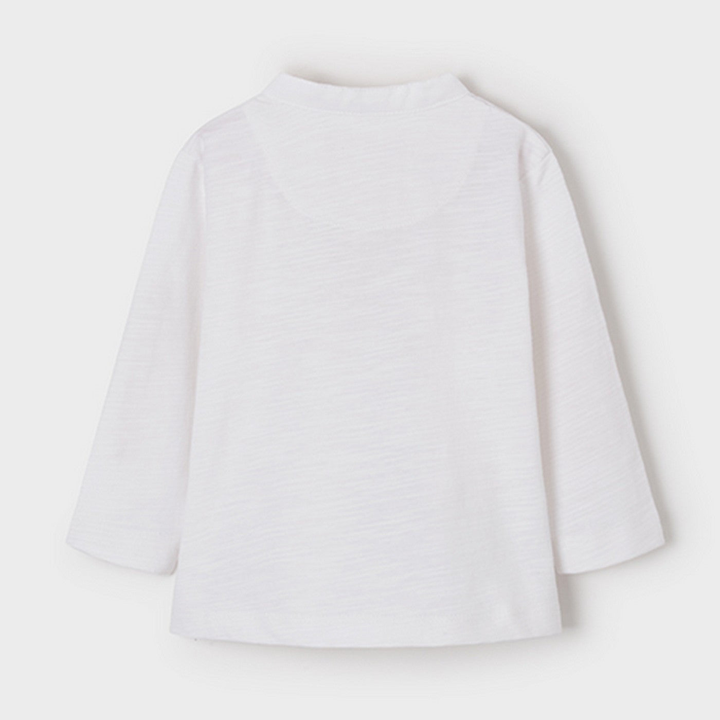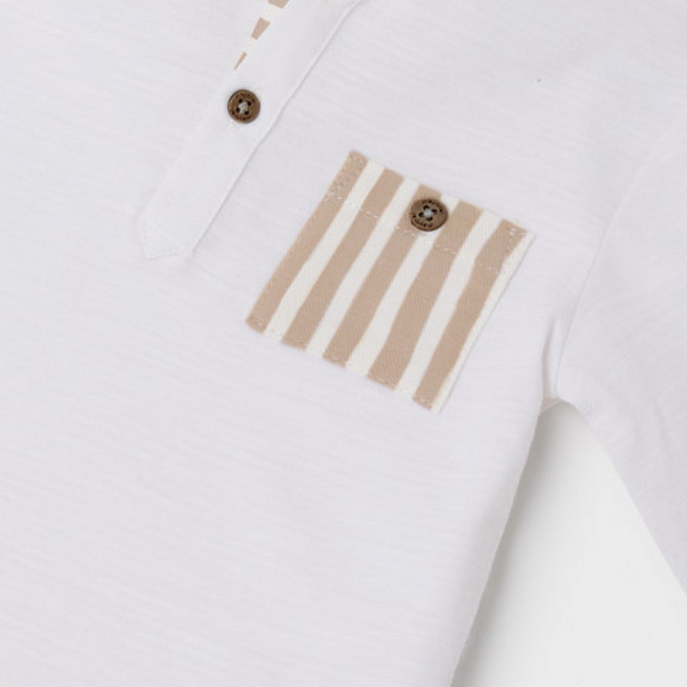 Maglietta manica lunga risvoltabile in cotone. Bianca con dettagli beige.