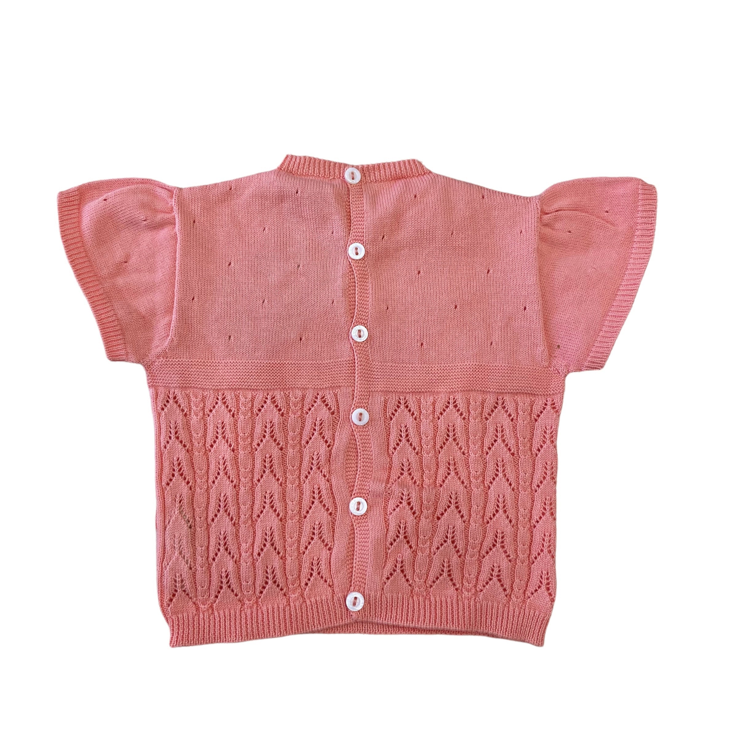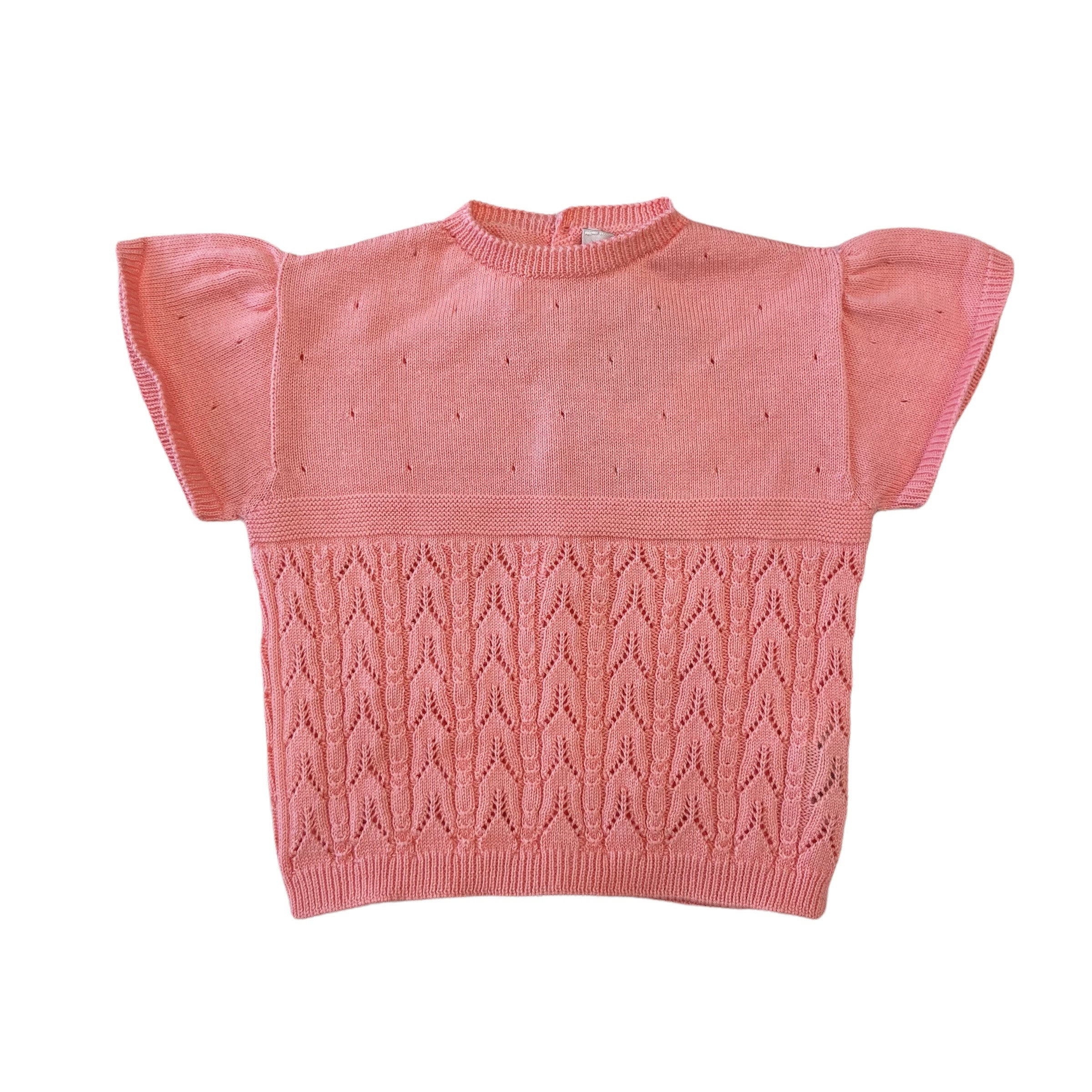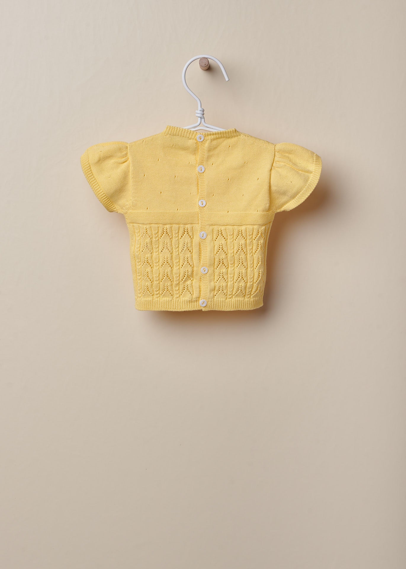 Maglietta mezza manica in filo in due varianti di colore, giallo e corallo.