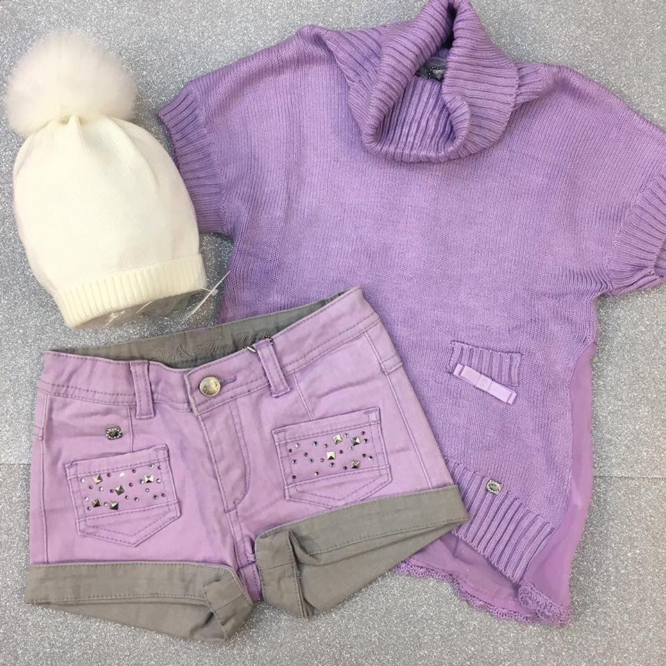 Maglioncino glicine in tinta unita a mezze maniche e collo alto