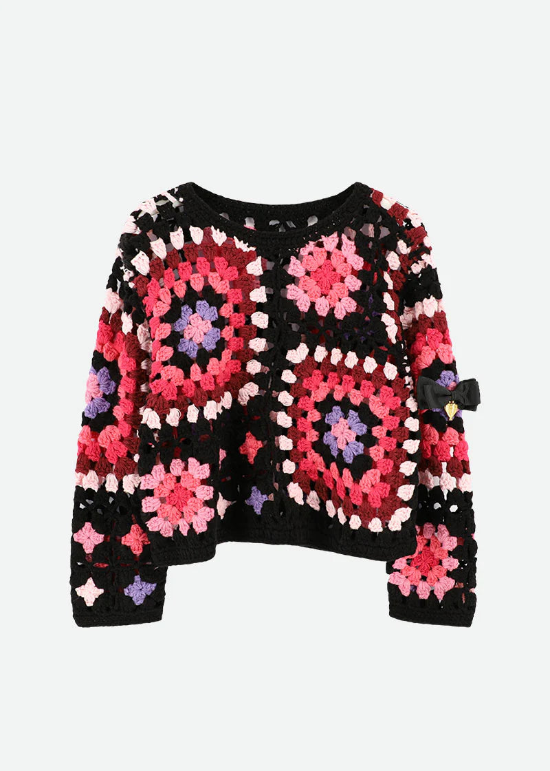 Questo maglione in crochet multicolore per bambina ANGEL'S FACE SHEILA è completamente realizzato a mano all'uncinetto con percentuali di cotone al 100%.