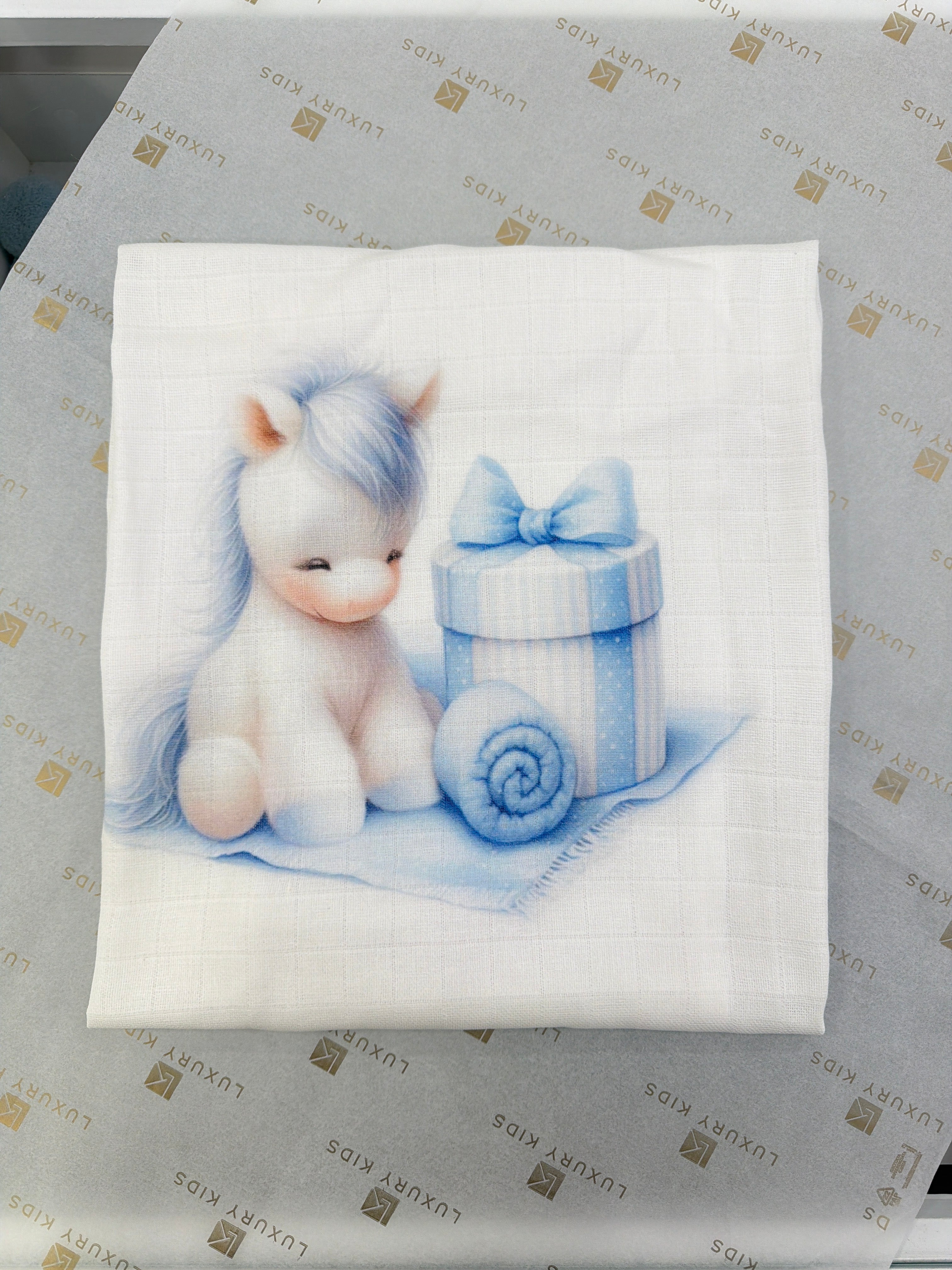 Praticità ed eleganza si uniscono in questa Mussola in Cotone con Stampa Di Cavalluccio Neonato/a FIRST BABY MUSLIN3. Realizzata in morbido cotone e disponibile nella dimensione 80*80cm, è perfetta per il corredino del tuo neonato/a. La stampa cavalluccio aggiunge un tocco di stile alla sua utilità.