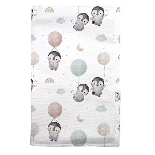 Mussola In Cotone Organico Stampata Neonato/a CUCUSETTETE PINGUINI