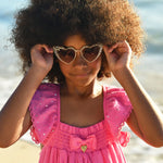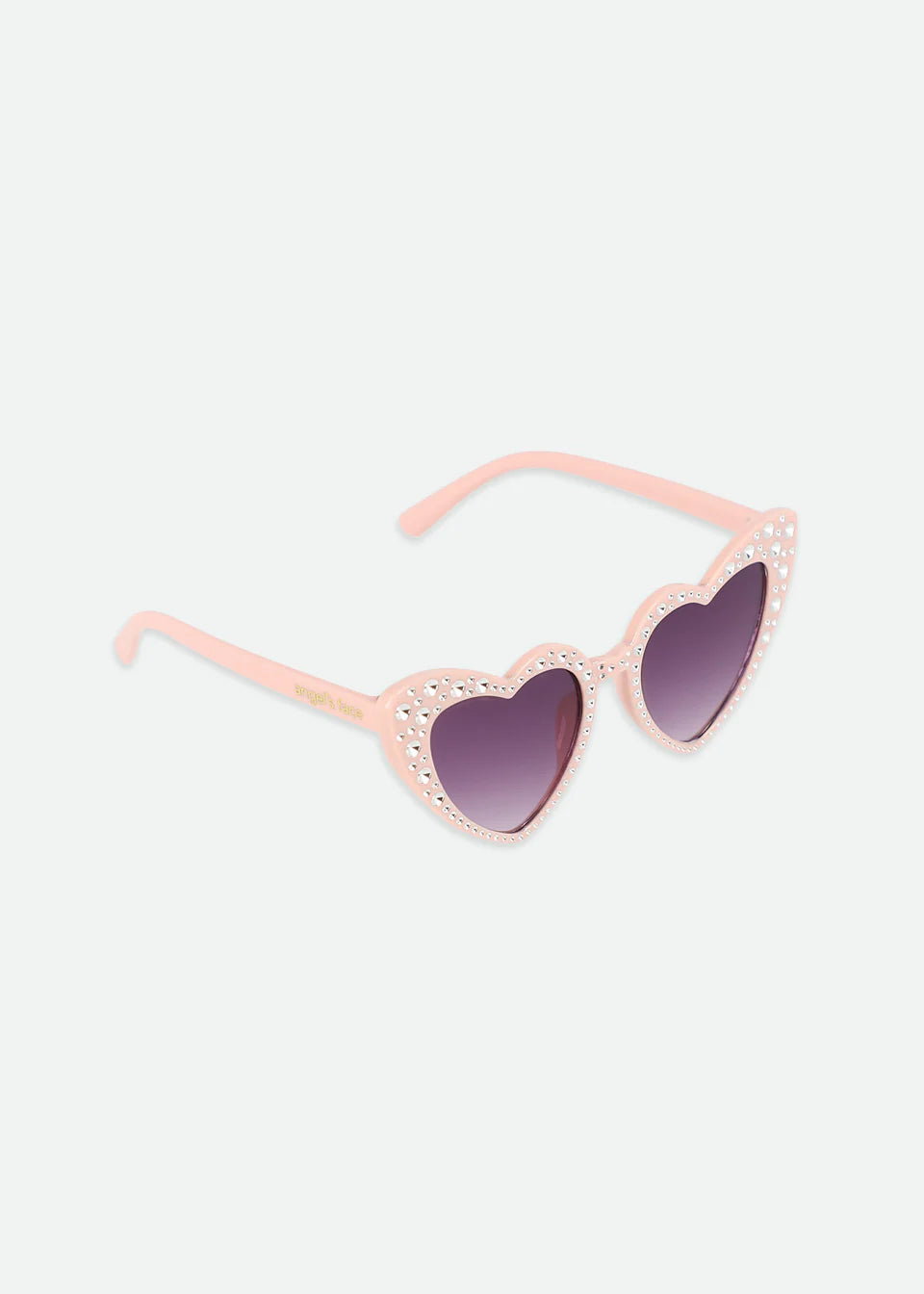 Eleganti occhiali da sole a forma di cuore per bambine. Montatura in acrilico con cristalli e logo Angel's Face sul lato. Ogni paio è confezionato in una lussuosa custodia rosa. Gli occhiali da sole hanno una protezione UV completa per proteggere i delicati occhietti.