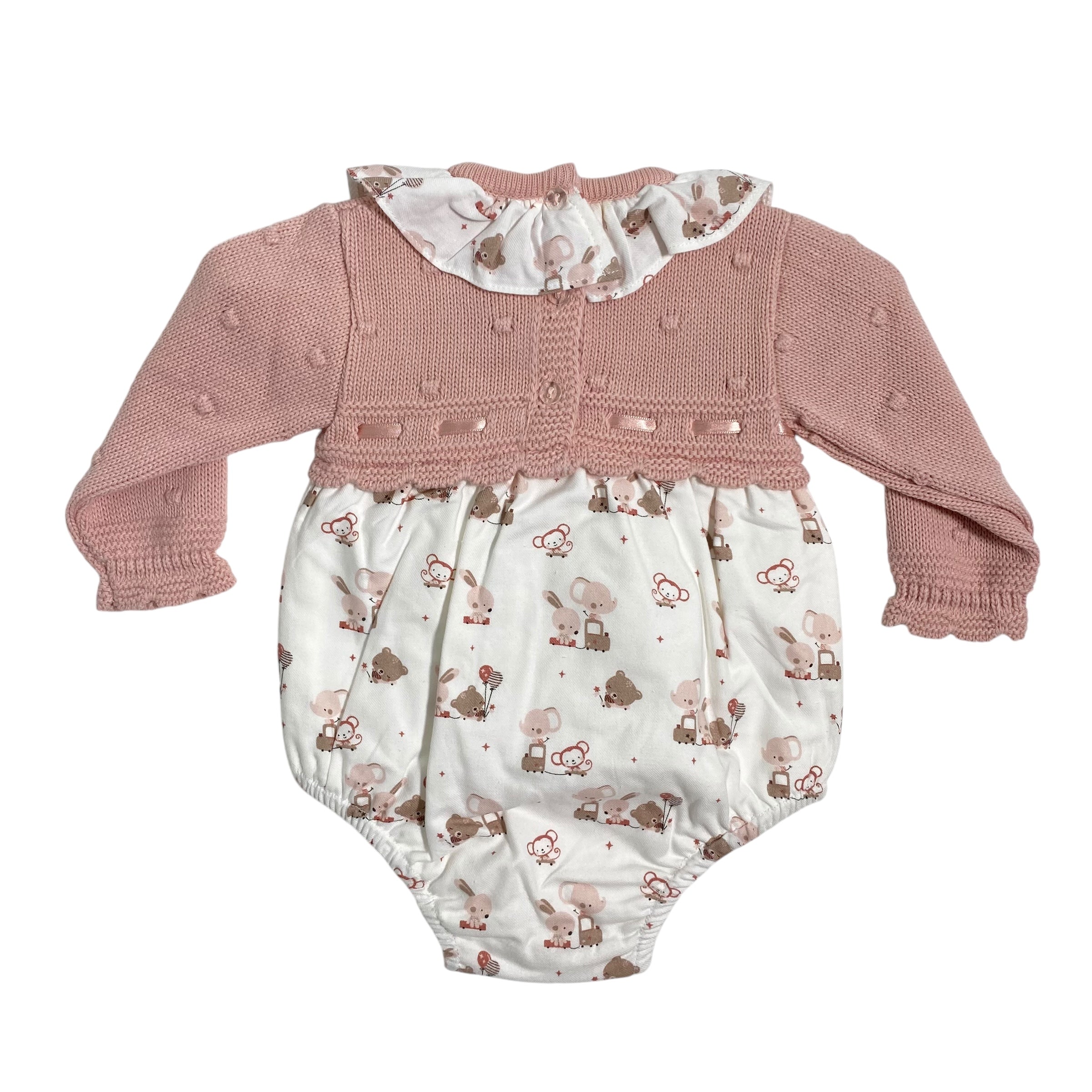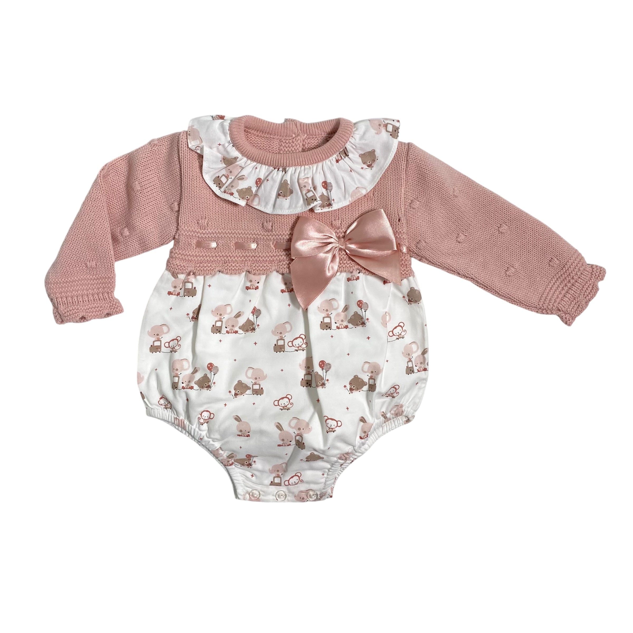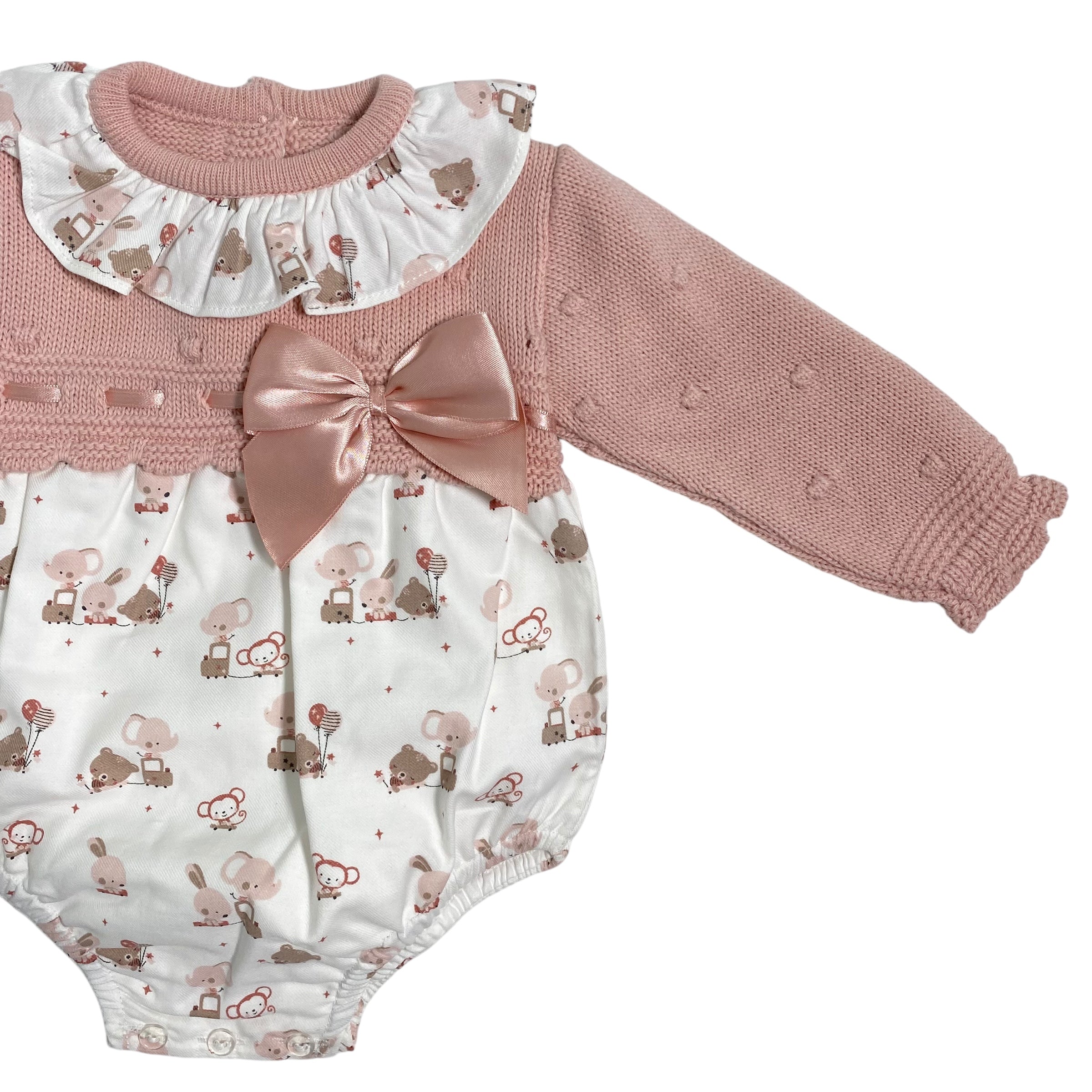 Questo pagliaccetto combinato e' perfetto per la tua neonata! Il corpetto in maglia offre comfort, mentre il tessuto stampato aggiunge un tocco di stile. Il collo arricciato e il fiocco in raso sul petto rendono questo capo elegante e sofisticato. Aggiungi un tocco di classe al guardaroba della tua piccola con Pagliaccetto Combinato In Maglia E Tessuto Neonata BABY FASHION.