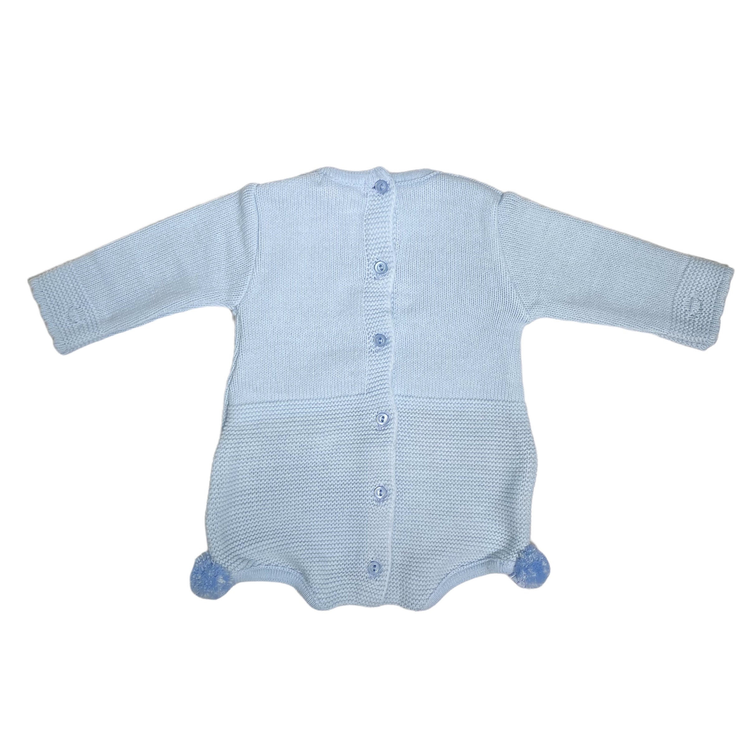 Pagliaccetto Con Body In Caldo Cotone Celeste Con Pom Pon Neonato A&J 226 - A&J - LuxuryKids