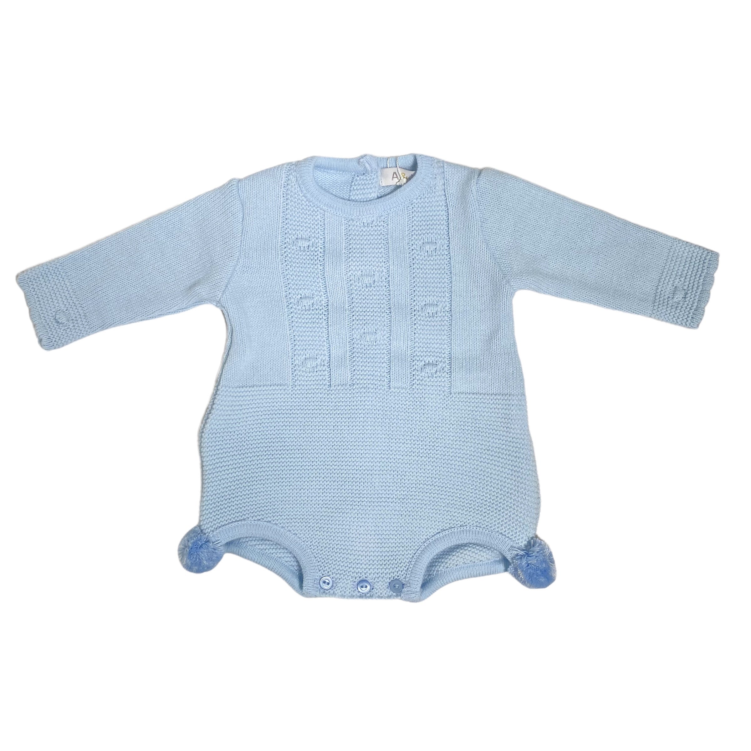 Pagliaccetto Con Body In Caldo Cotone Celeste Con Pom Pon Neonato A&J 226
