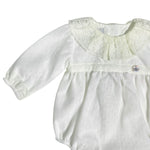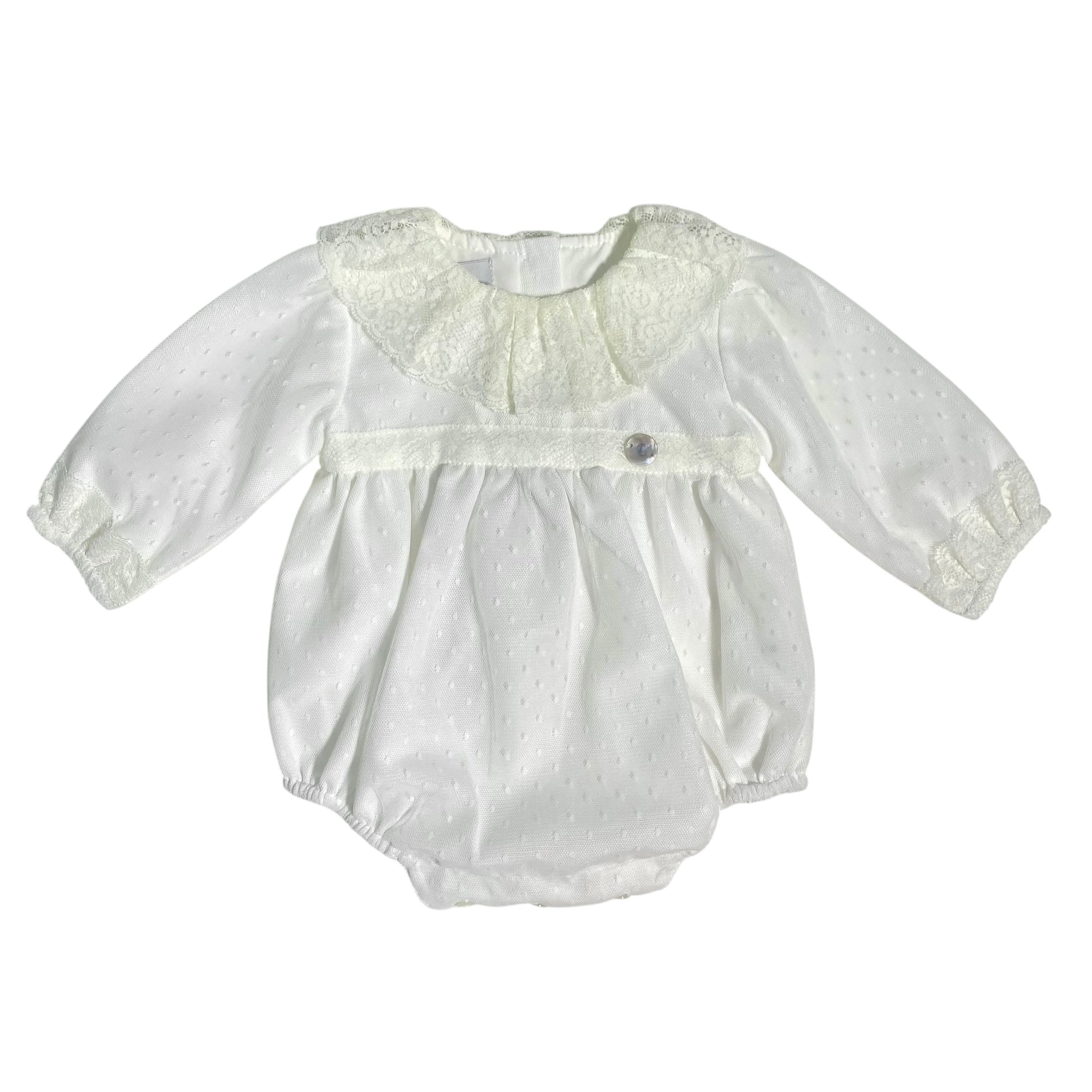 Questo pagliaccetto elegante e raffinato per neonate di GRANLEI è perfetto per il battesimo o occasioni speciali. Realizzato in caldo cotone coperto da tulle, presenta un meraviglioso collettone in pizzo e una fascia in vita. Alla moda e di alta qualità, sarà un'ottima scelta per la vostra piccola principessa.