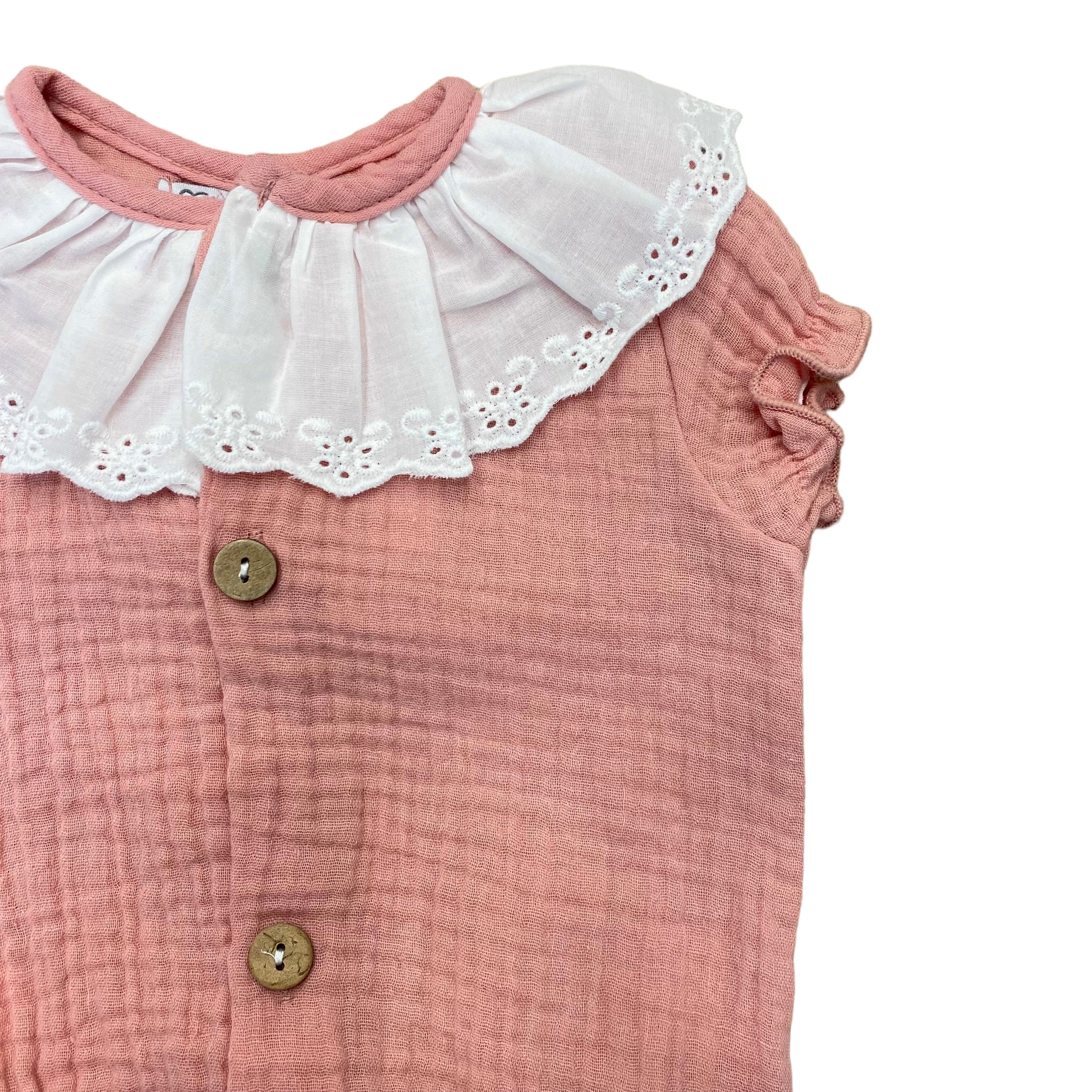 Pagliaccetto Intero In Garza Rosa Antico Neonata CALAMARO 32397