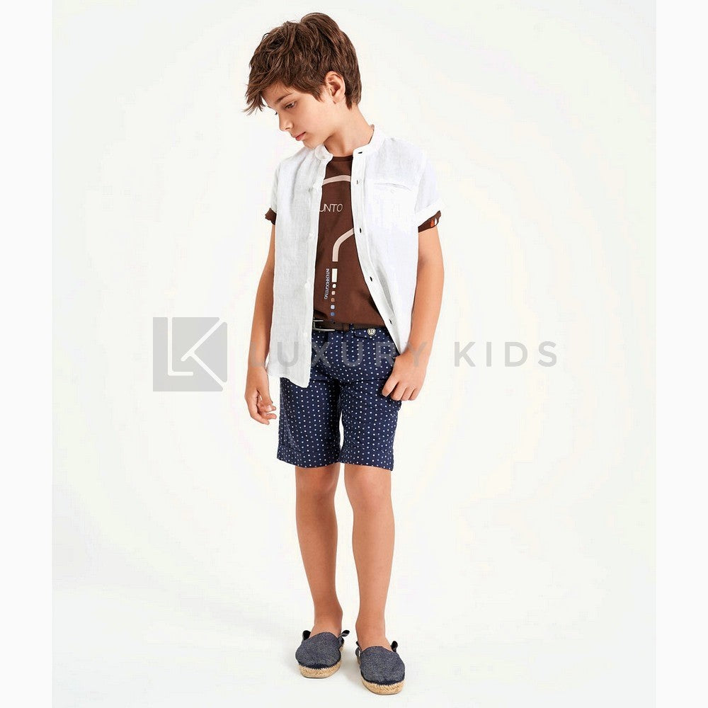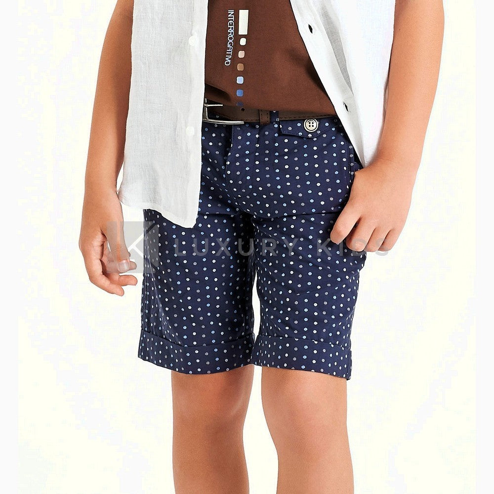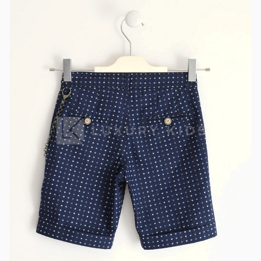 Pantalone corto Sarabanda 100% cotone con micro pois. Una fantasia e un modello adatto a tutte le occasioni. La vita è regolabile con elastico asolato. La lunghezza è sopra il ginocchio