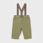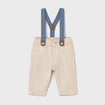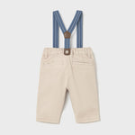 Pantalone per neonato. Chiusura con un unico bottone. Elastico regolabile in vita che garantisce un migliore vestibilità. Design con bretelle smontabili. Finte tasche anteriori e posteriori decorative.
