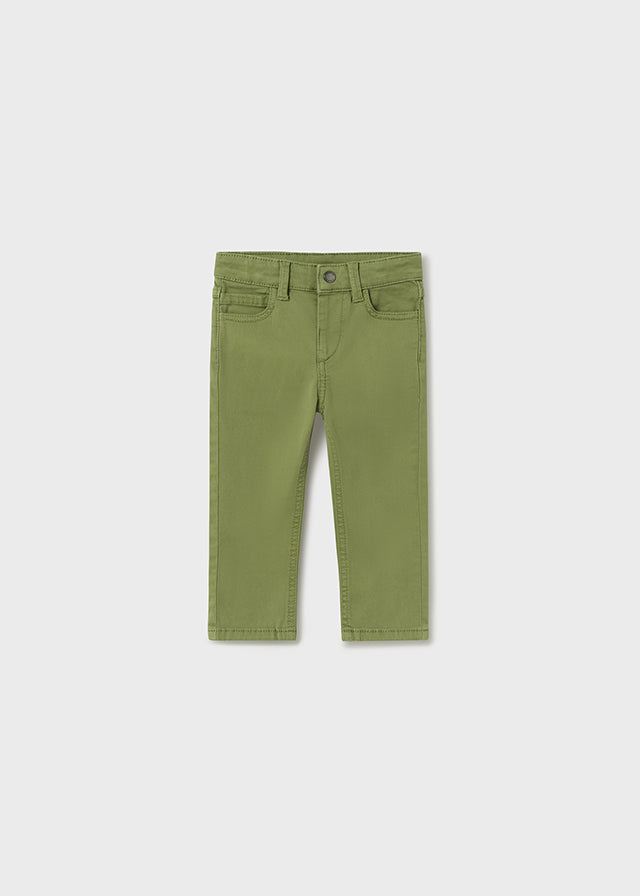Pantalone per bebé dal taglio aderente (slim fit). Chiusura con bottone a pressione nella parte anteriore. Finta patta. Elastico regolabile in vita che garantisce un migliore vestibilità. Comodo tessuto in twill resistente. Con decorazione sostenibile. Modello con varie tasche. Modello appartenente alla nostra collezione Mayoral Basic, un articolo essenziale nel suo armadio utile a completare qualsiasi look. Scegliendo i nostri prodotti in cotone, supporti il nostro impegno nell'iniziativa Better Cotton. Il cotone Better Cotton è ottenuto attraverso un sistema di bilancio di massa e non può essere fisicamente ricondotto ai prodotti finali. tuttavia, i produttori di cotone beneficiano della domanda di Better Cotton in volumi equivalenti.