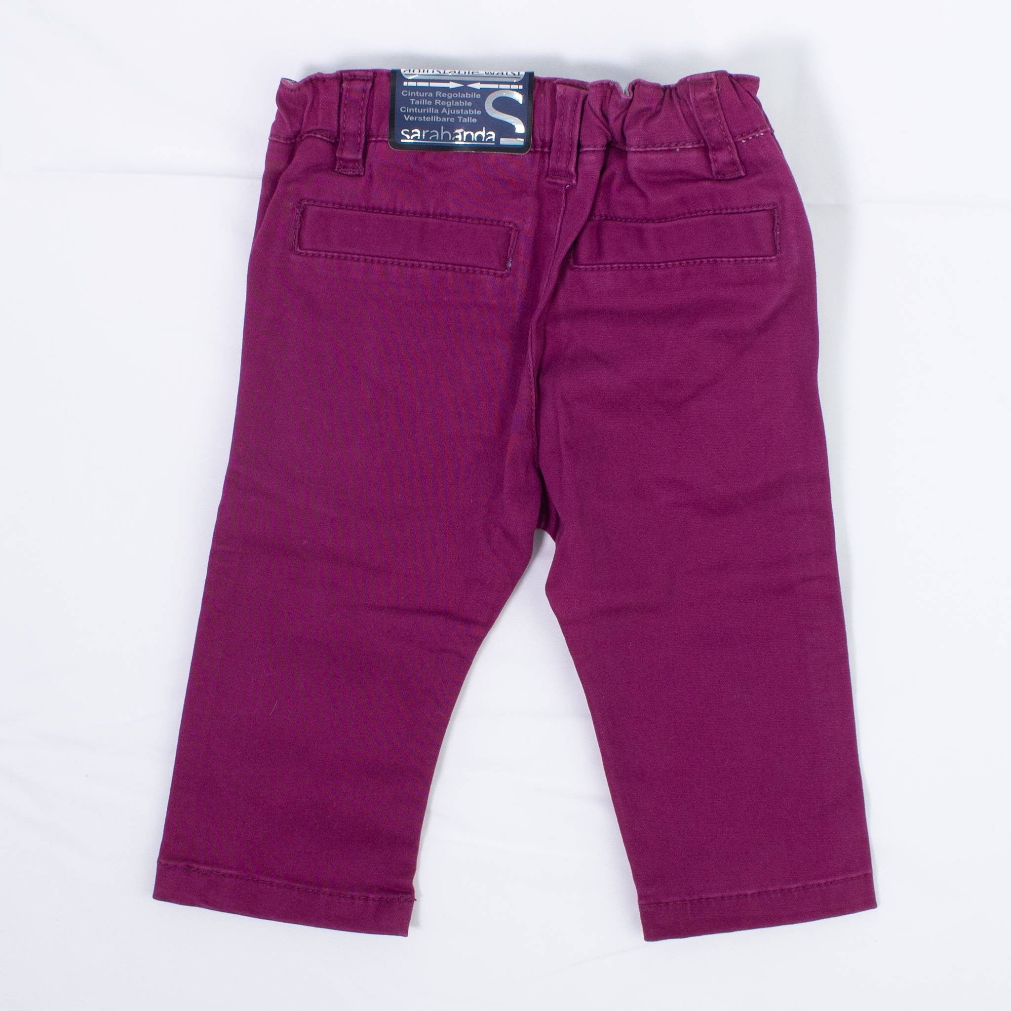 Pantalone slim in caldo cotone viola in tinta unita con tasche america ed elastico all'interno che permette di regolare la vestibilità