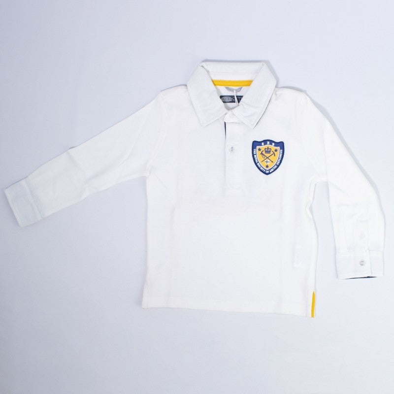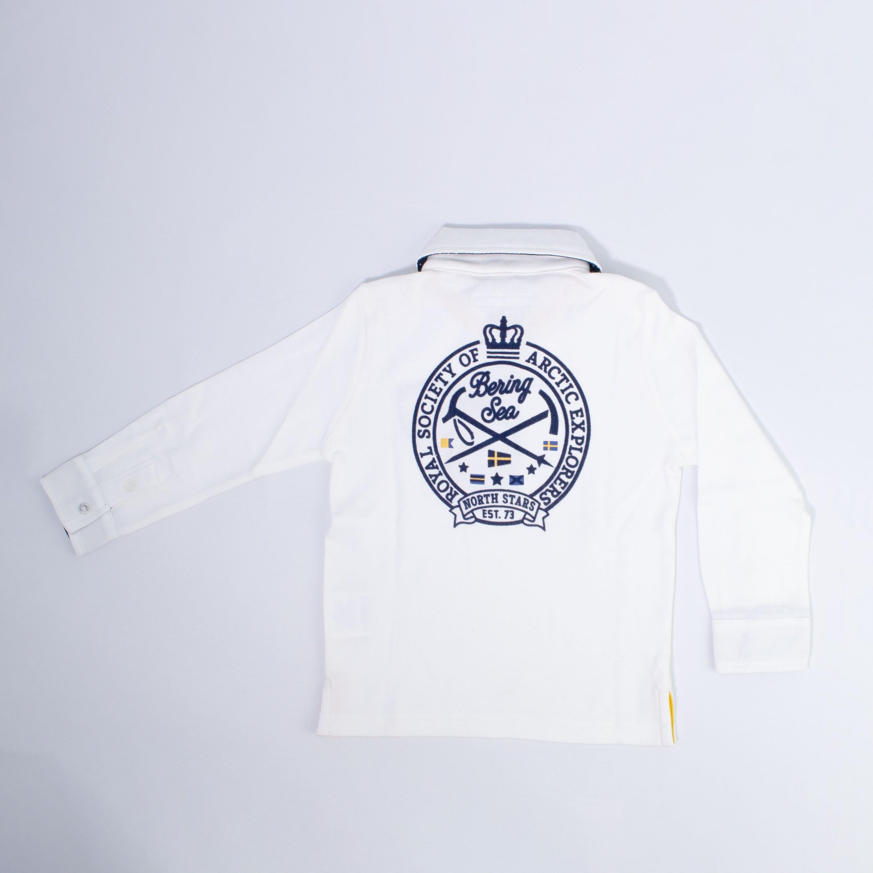 Polo in caldo cotone bianco in tinta unita con ricamo sul petto e sul retro