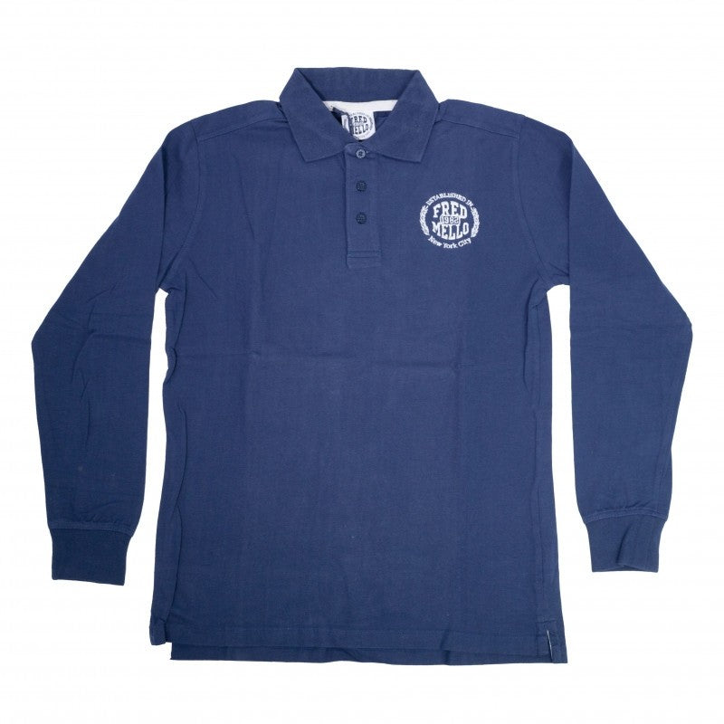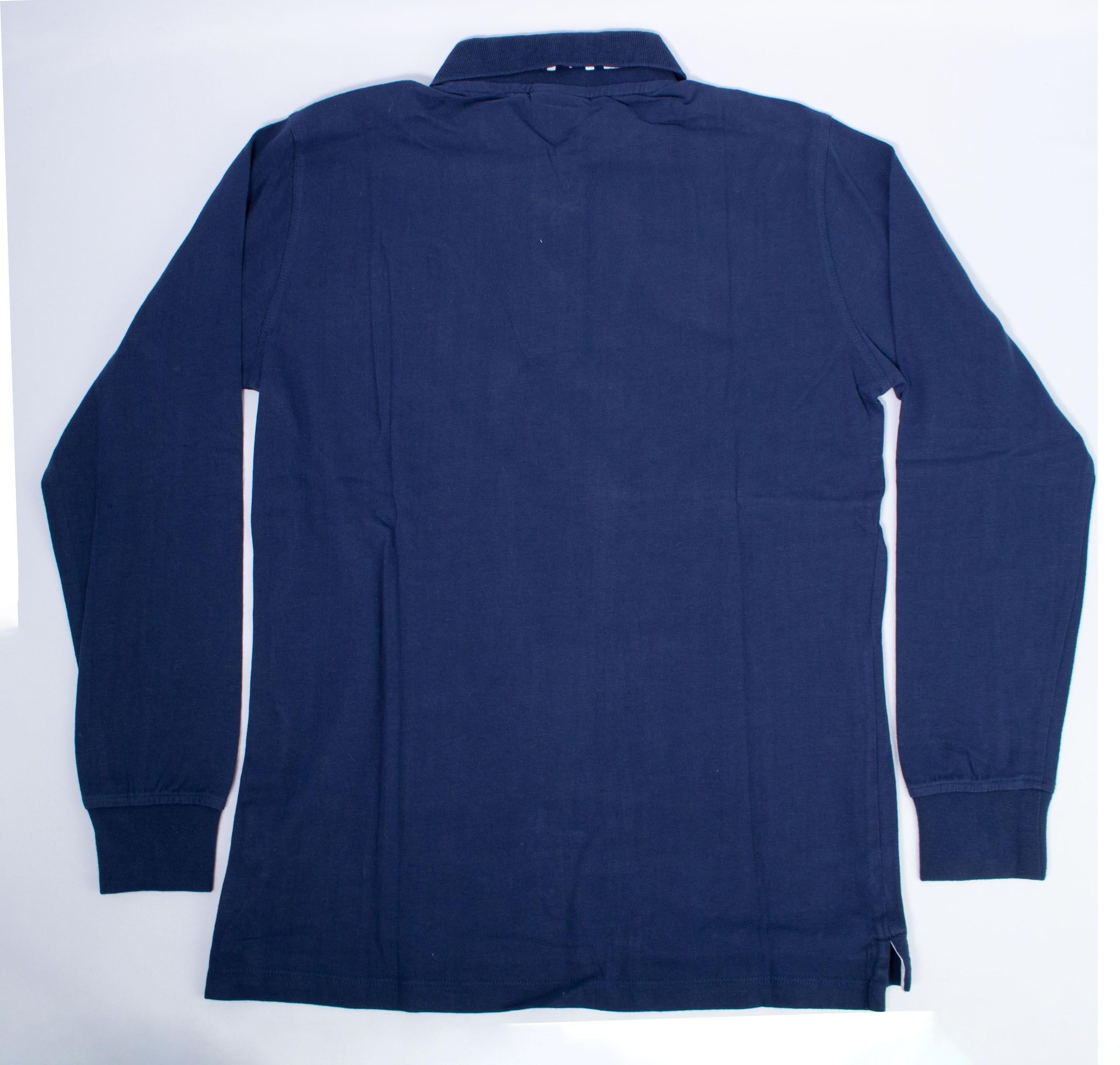 Polo in caldo cotone blu in tinta unita manica lunga con ricamo logo sul petto e chiusura con bottoni