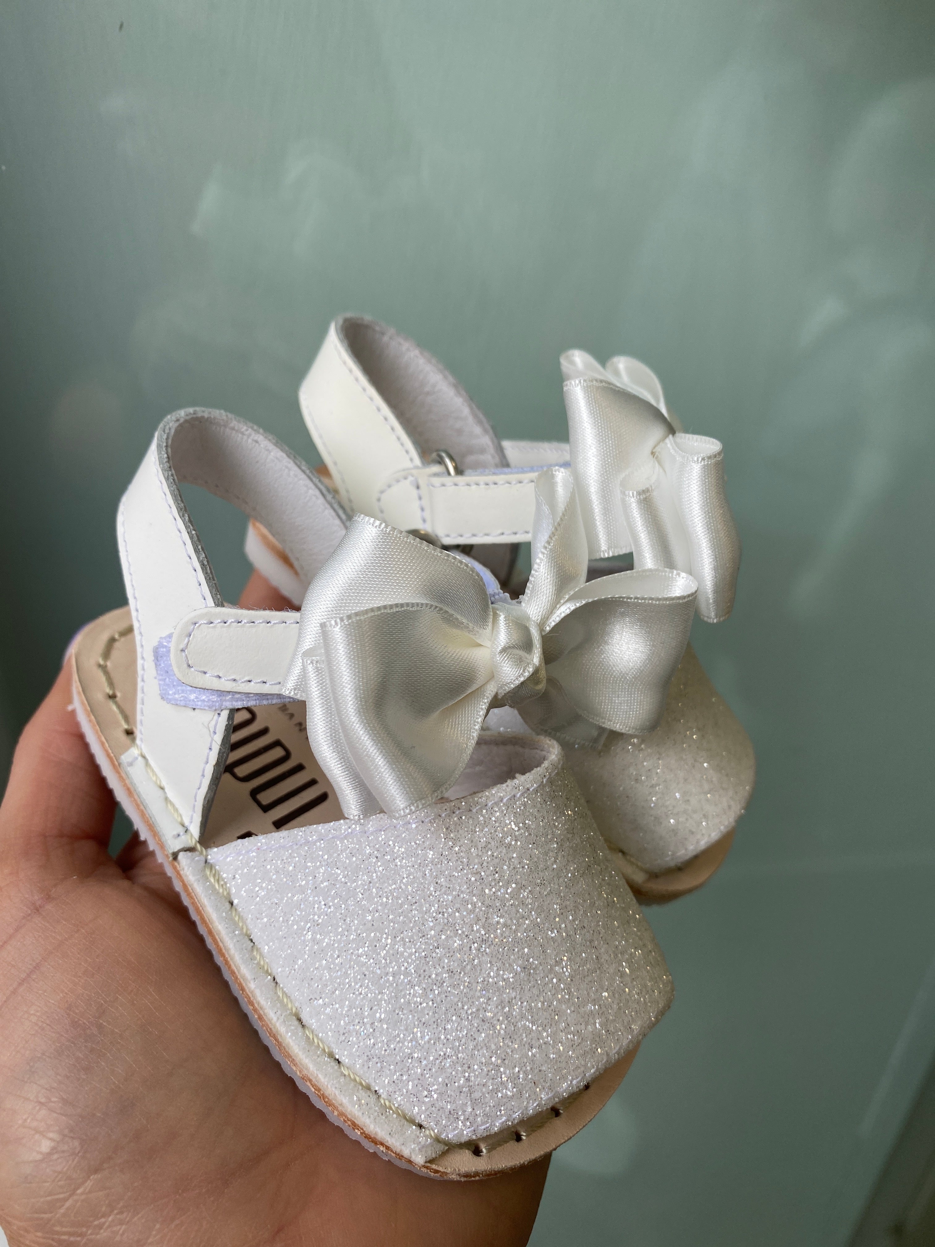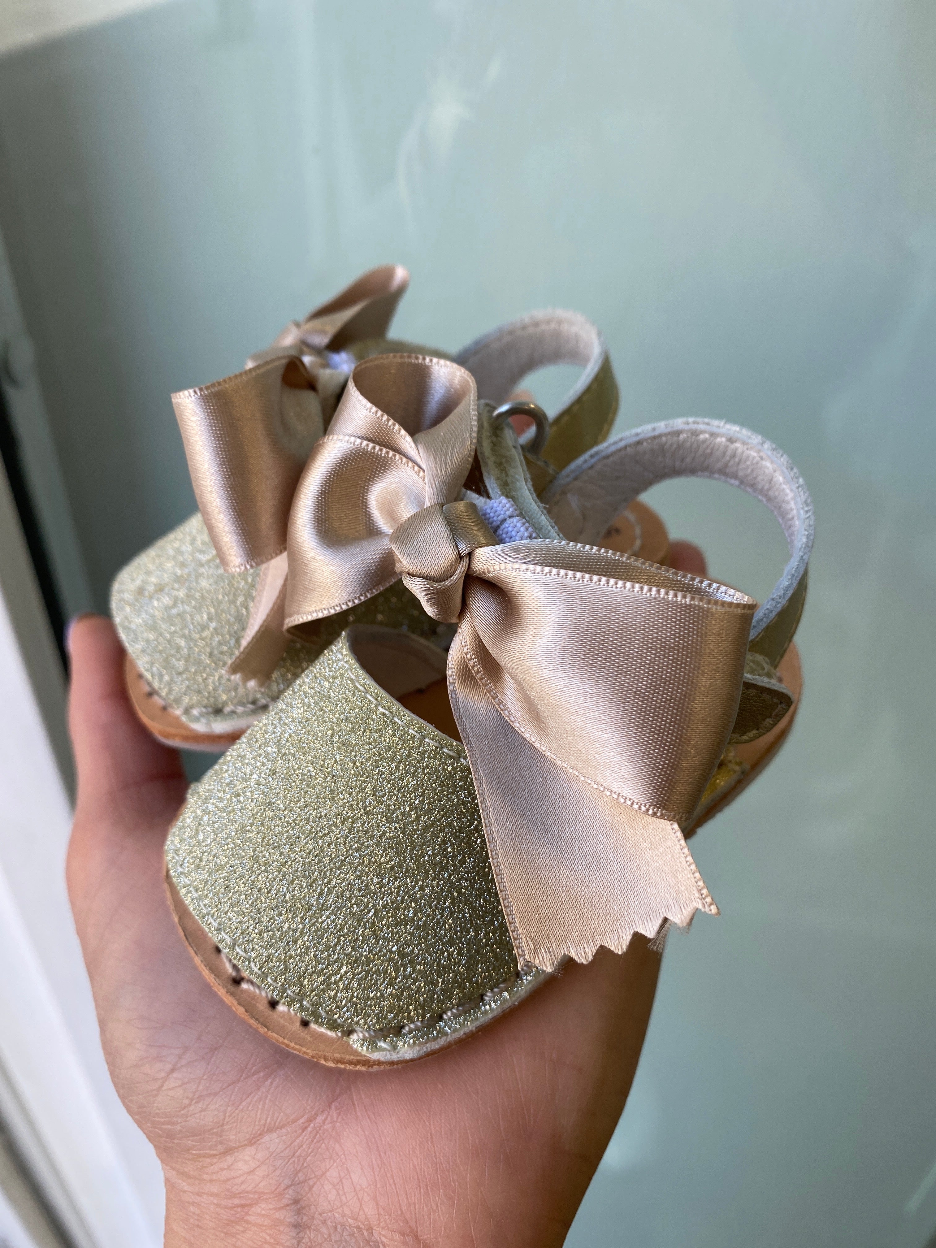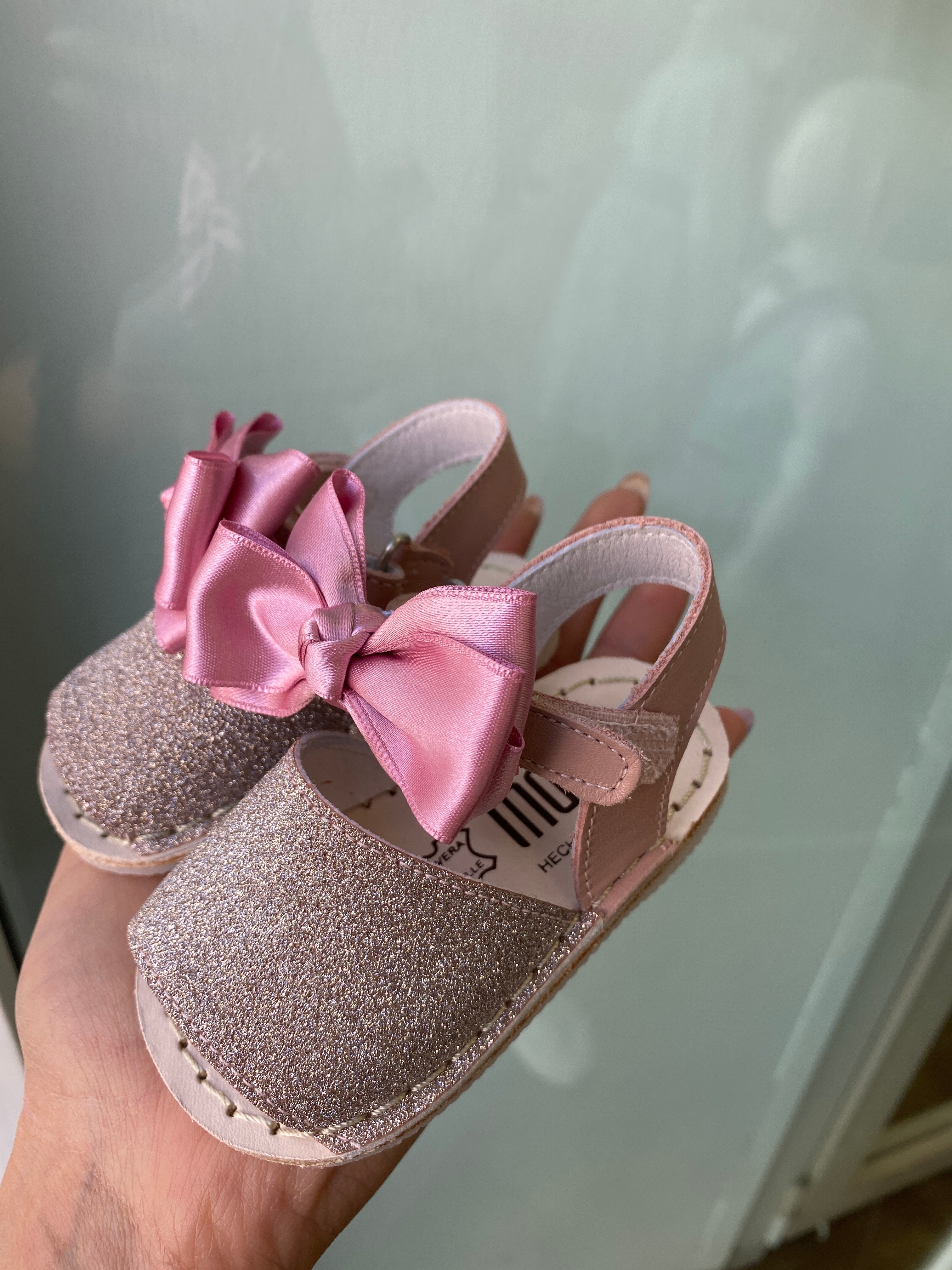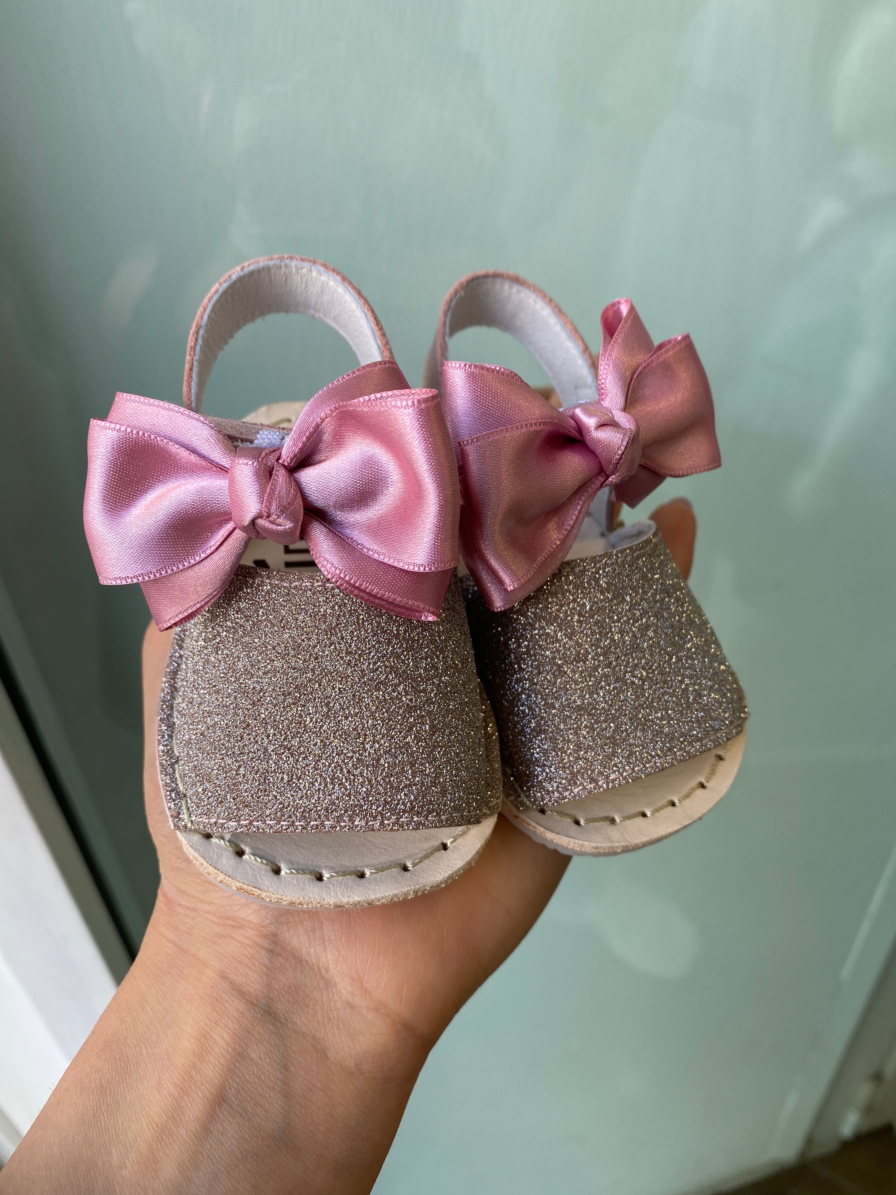 Sandali Primi Passi Minorchine Glitter con Fiocco in Raso Bambina INDICE 300G