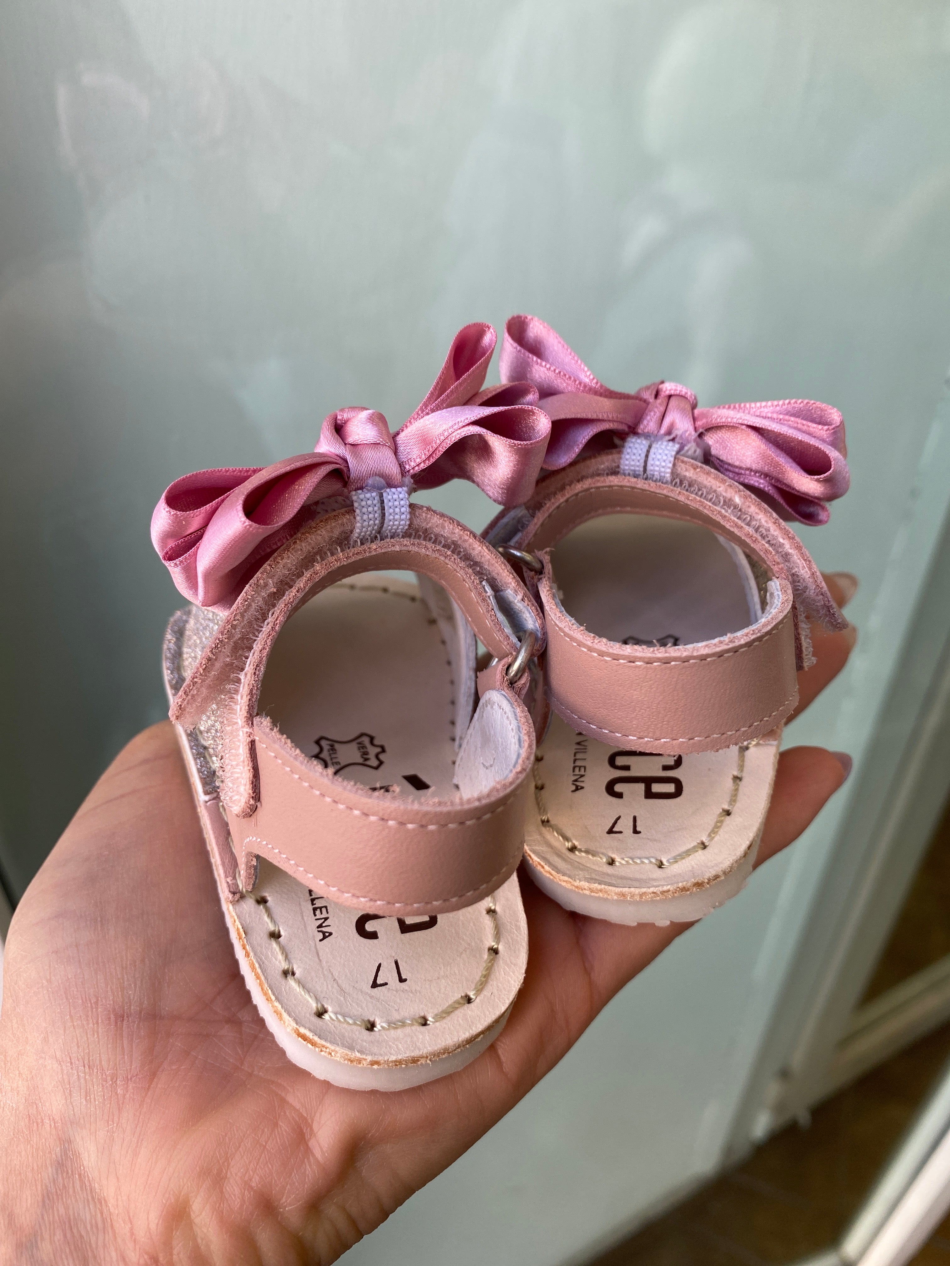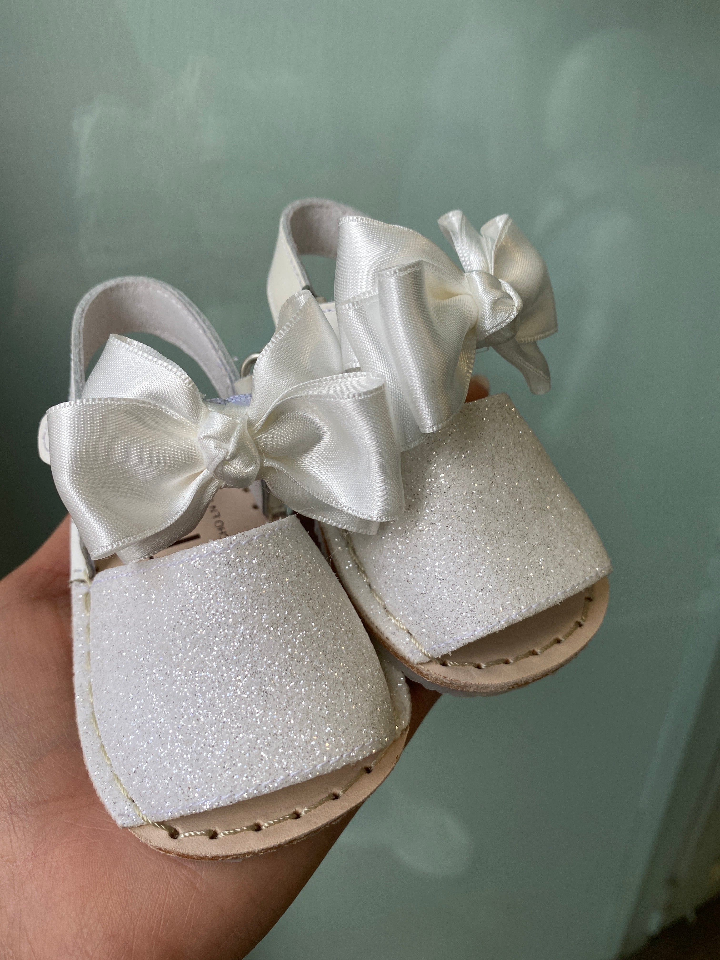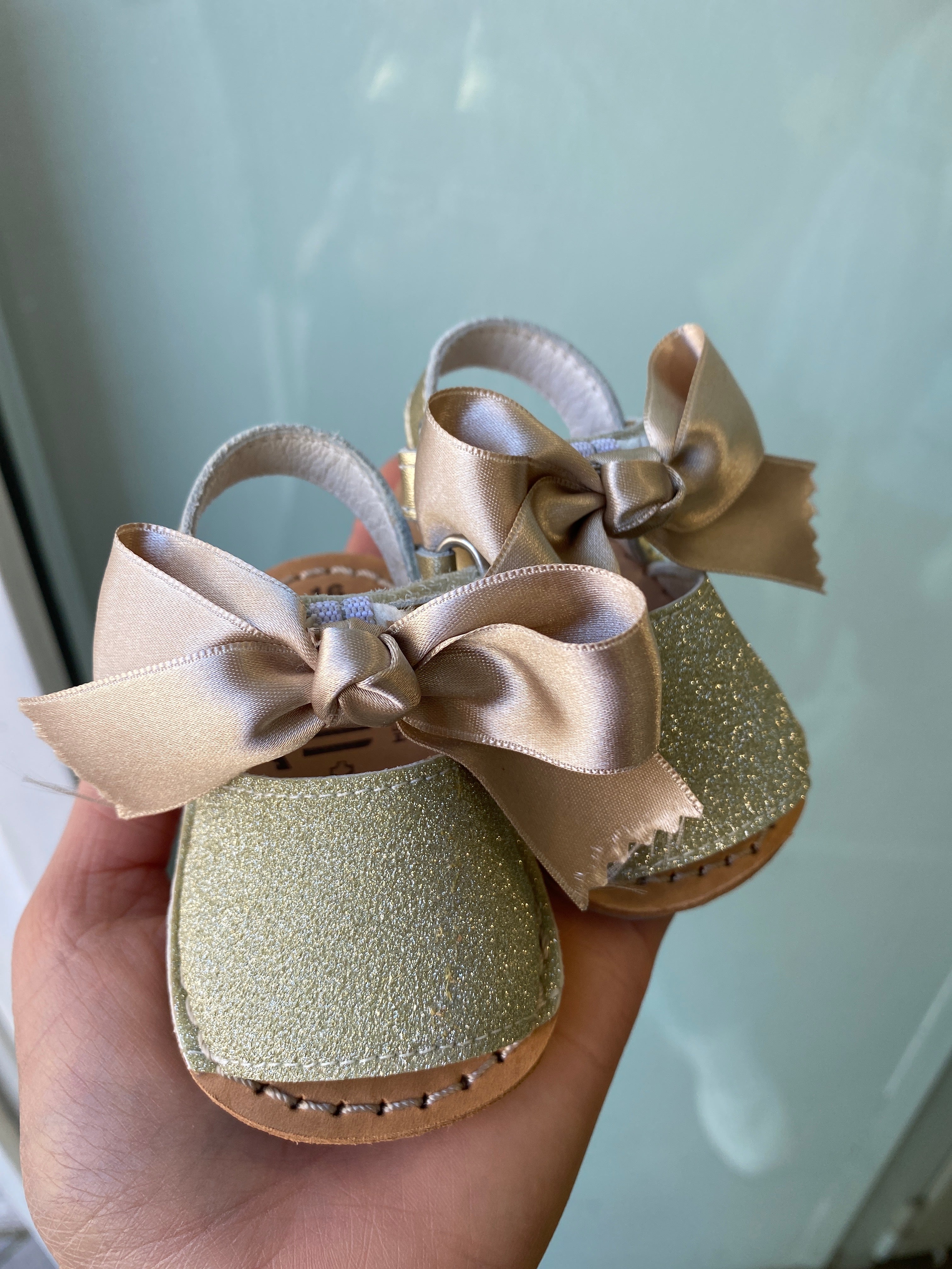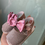 Sandali Primi Passi Minorchine Glitter con Fiocco in Raso Bambina INDICE 300G