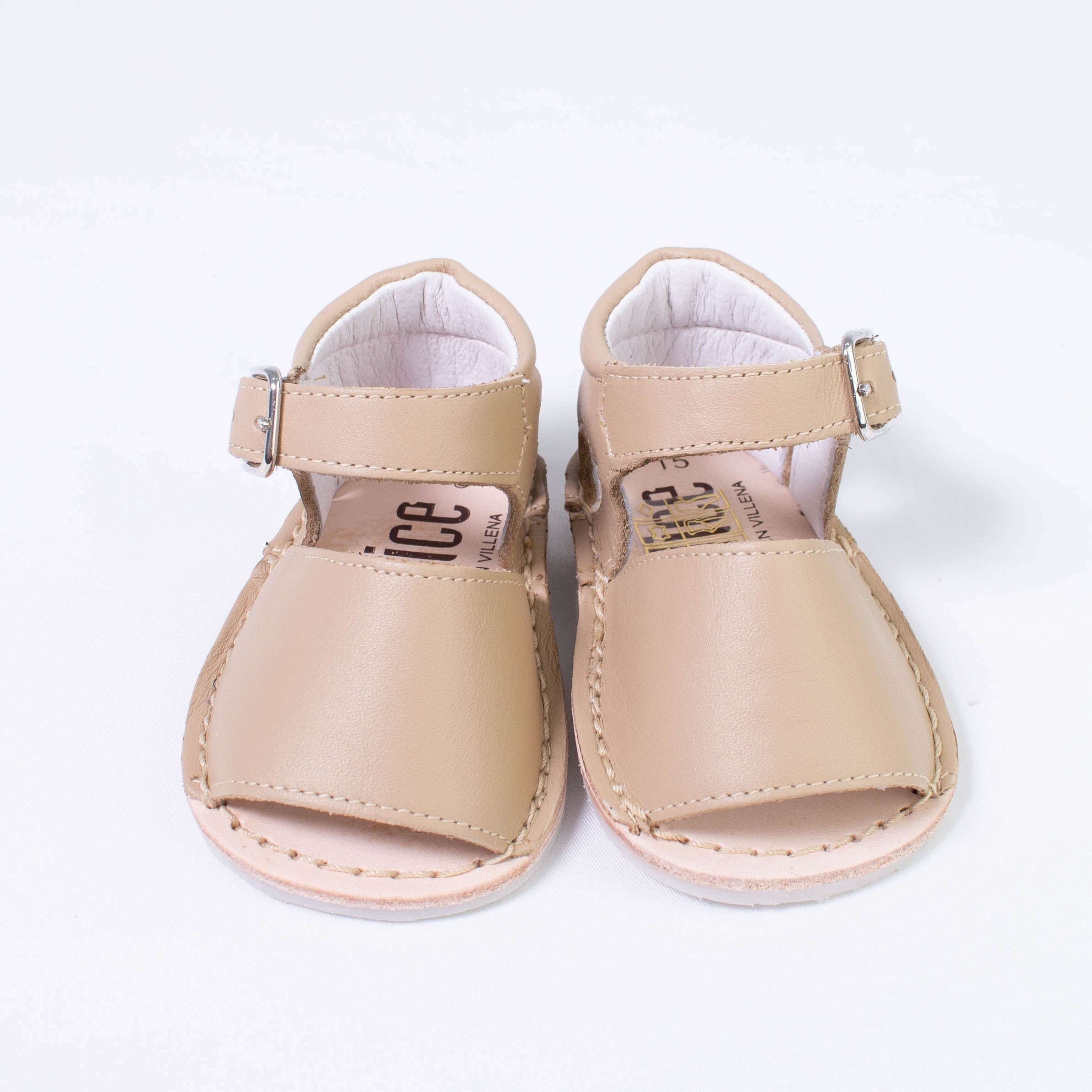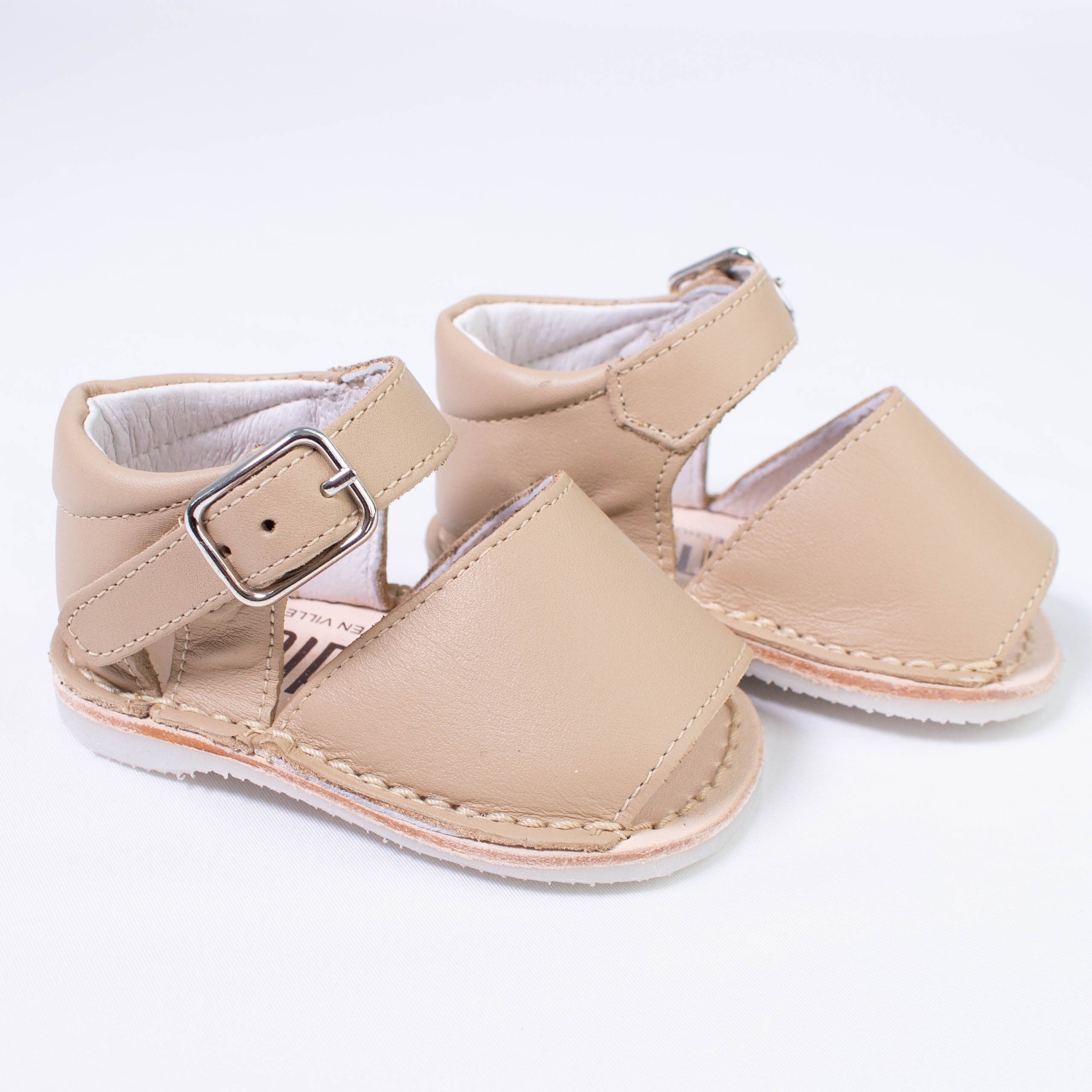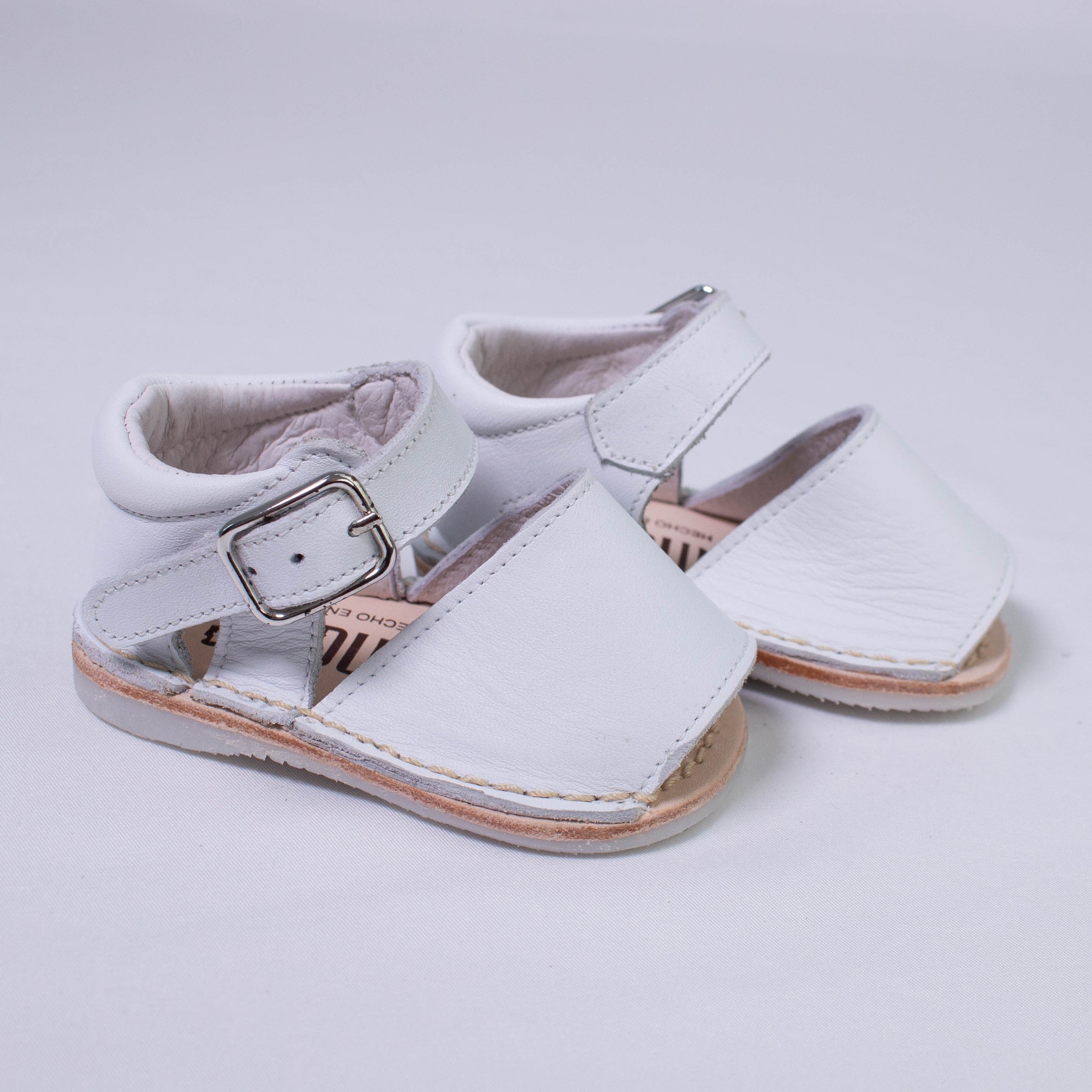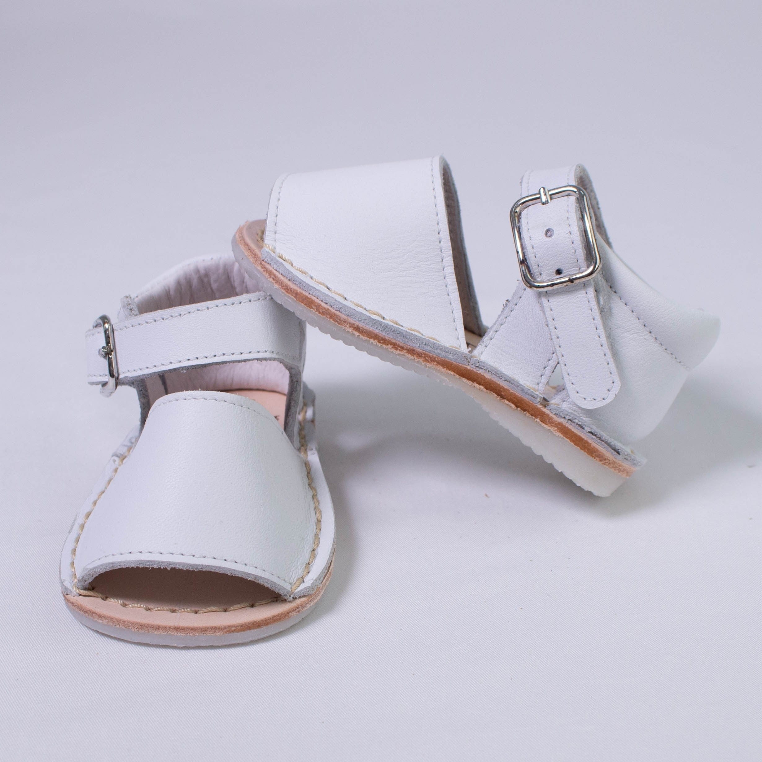 Sandaletti In Pelle Primi Passi Con Chiusura Laterale e Suoletta Antiscivolo