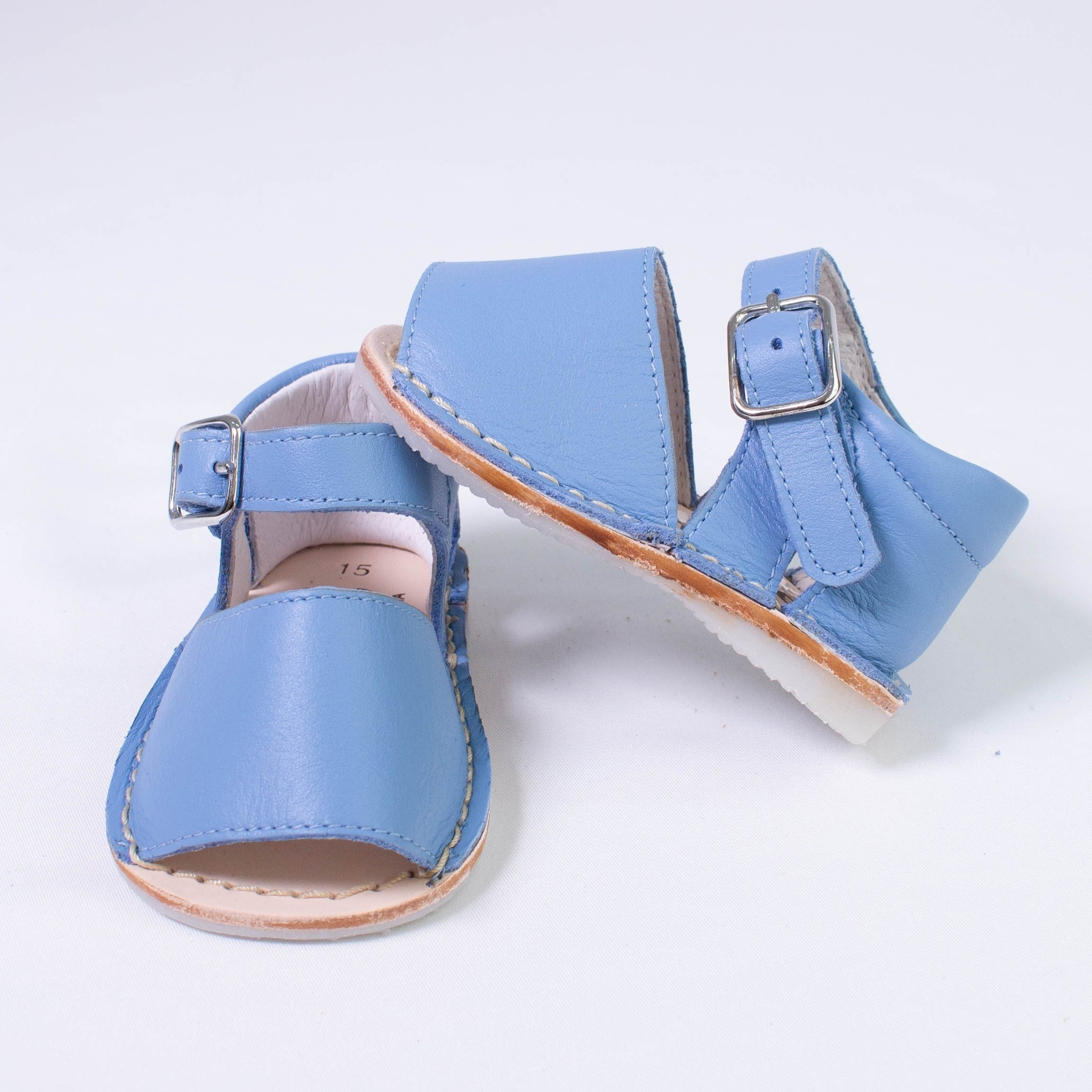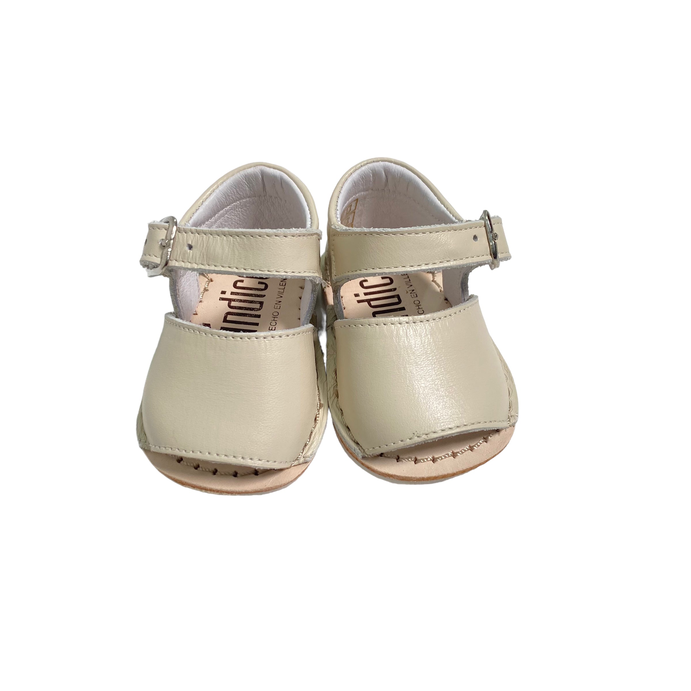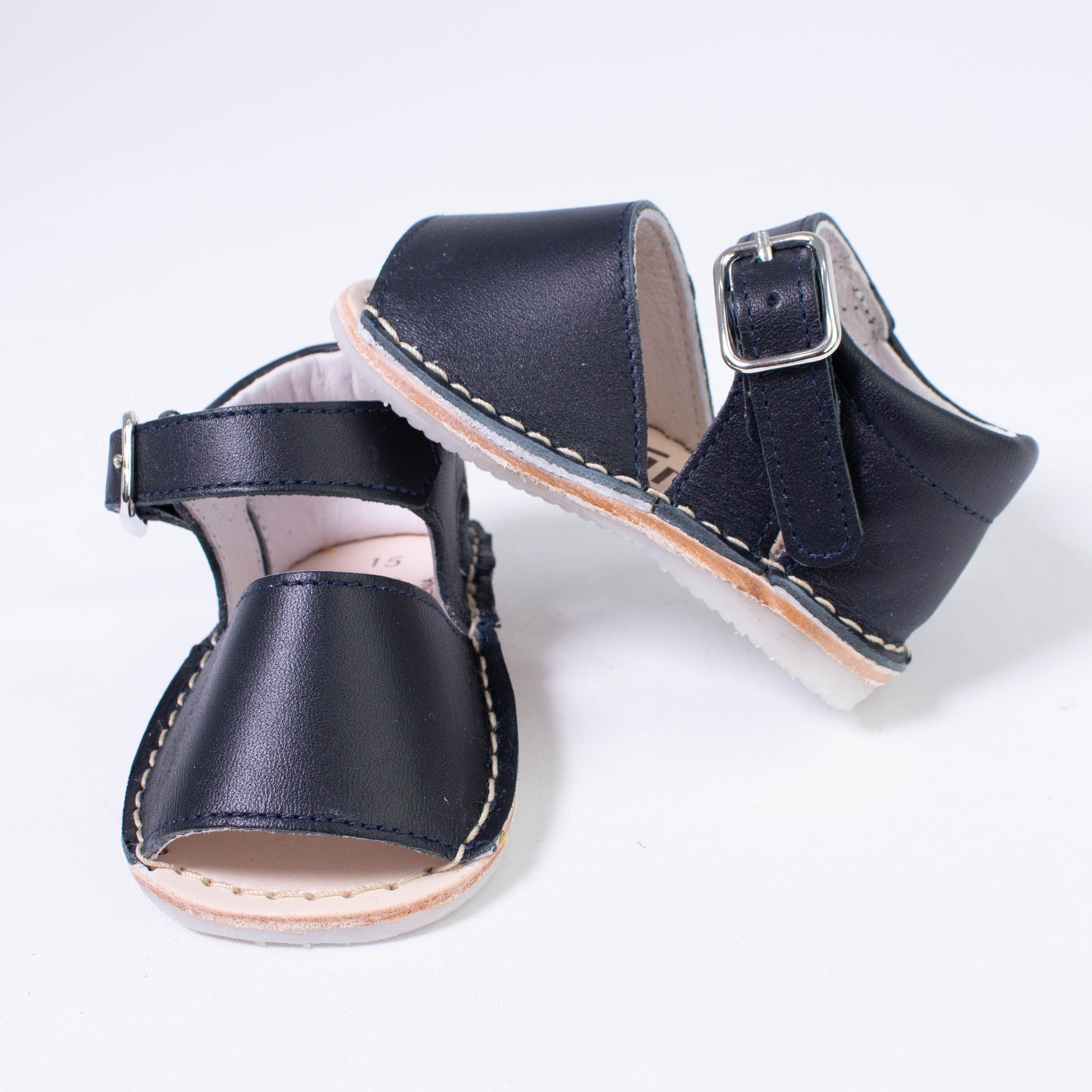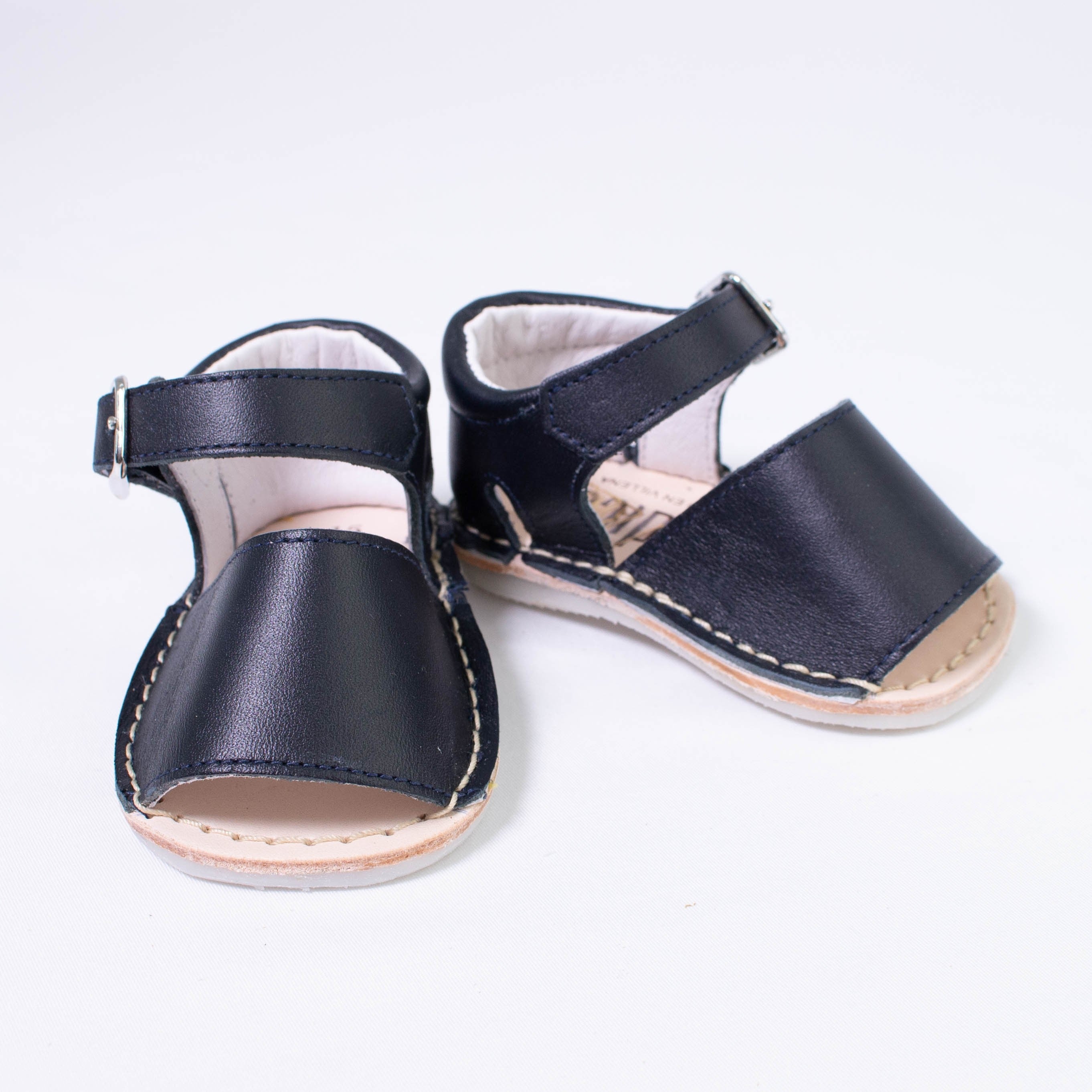Sandaletti In Pelle Primi Passi Con Chiusura Laterale e Suoletta Antiscivolo