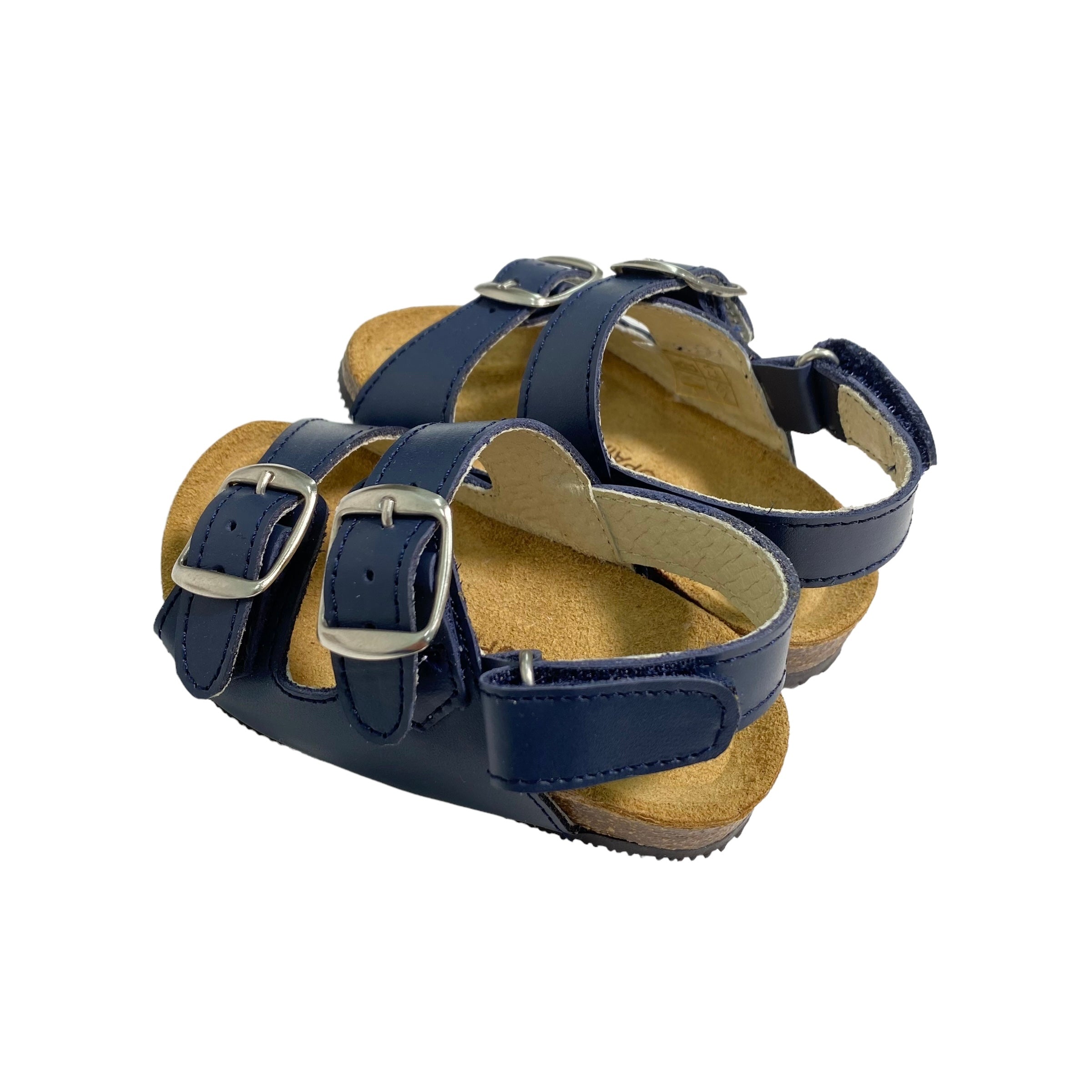 Sandali primi passi in pelle, con fibbie regolabili e suola in gomma.