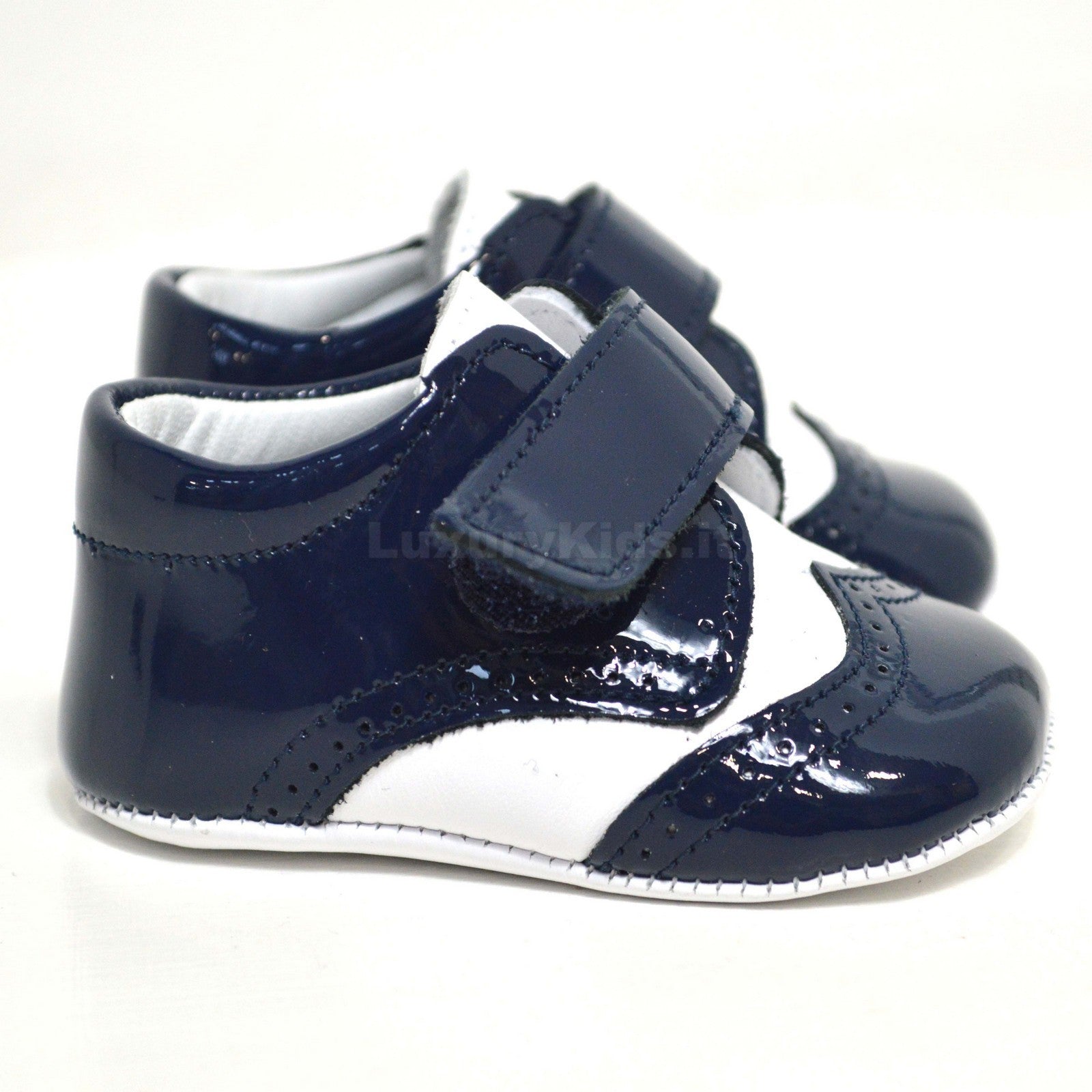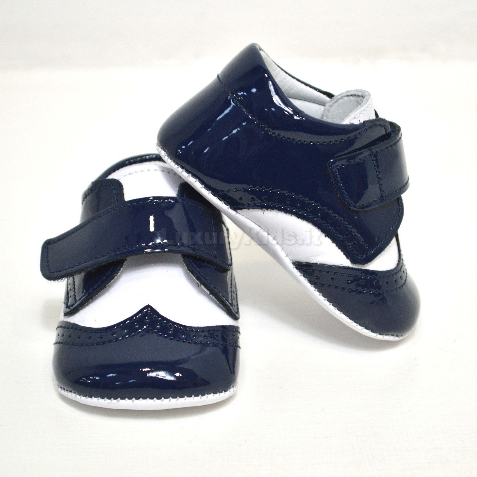 Scarpe culla In Pelle e Vernice Bianco-Blu Neonato Panyno A2411