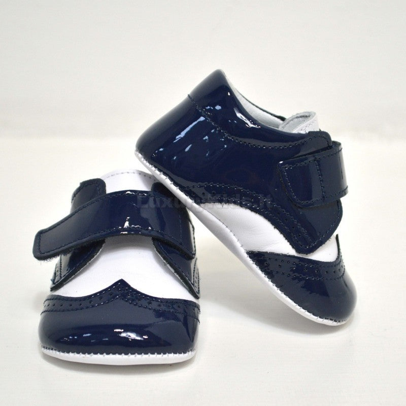 Scarpe culla In Pelle e Vernice Bianco-Blu Neonato Panyno A2411 - PANYNO - LuxuryKids