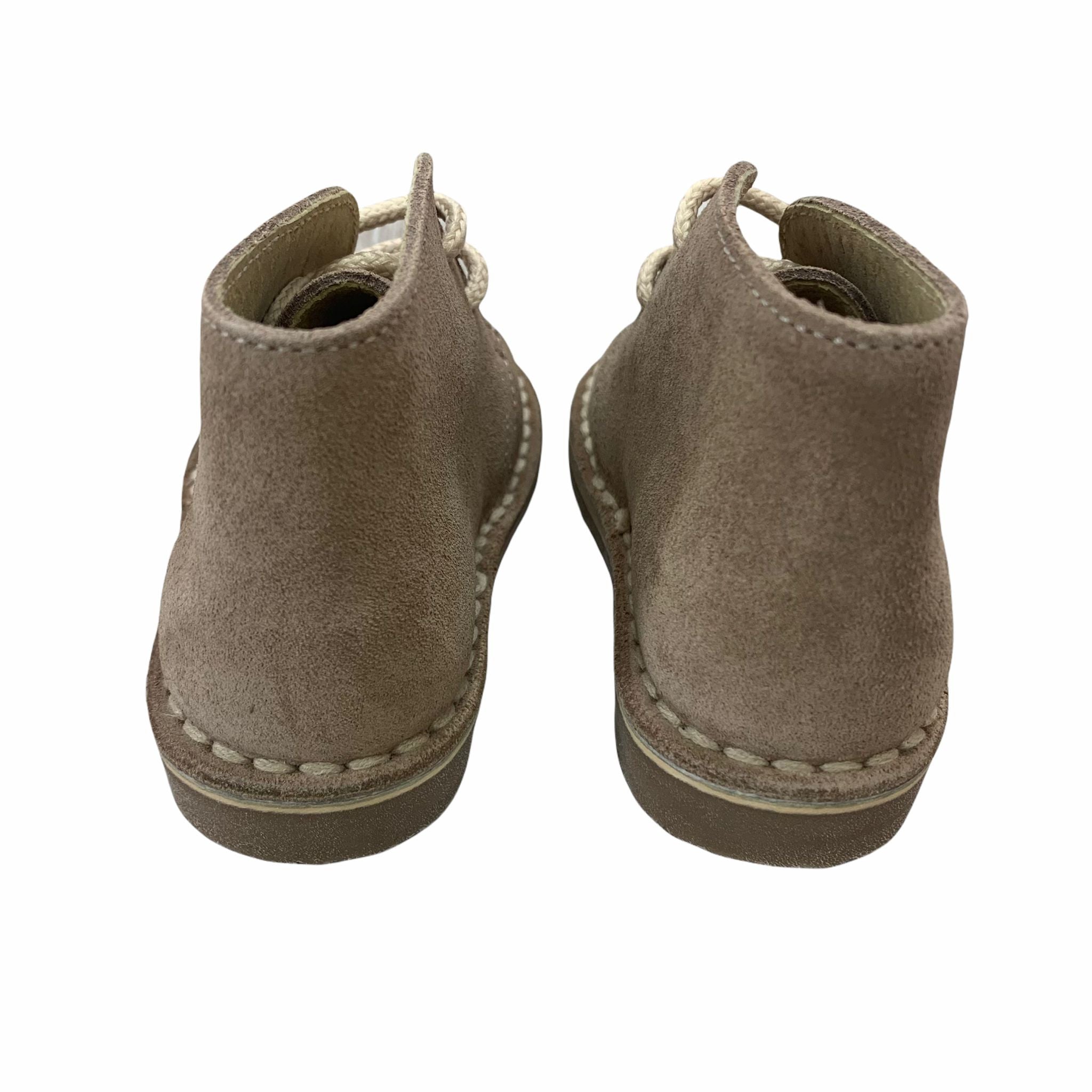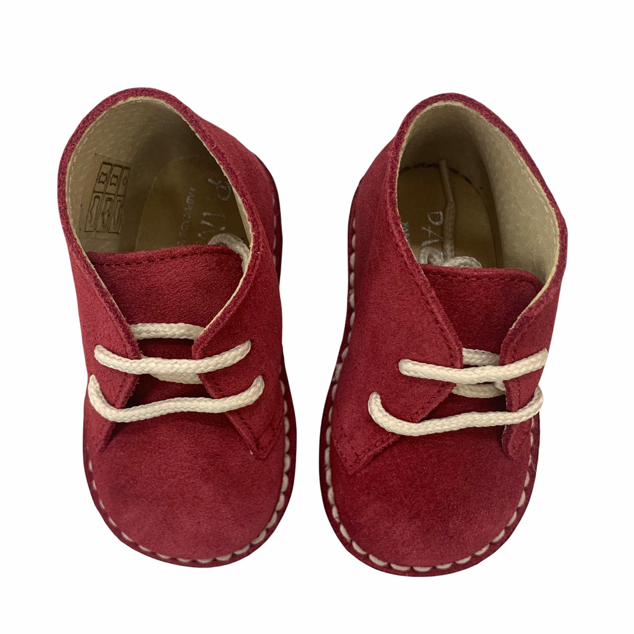 Polacchine in camoscio con lacci e suola antiscivolo.