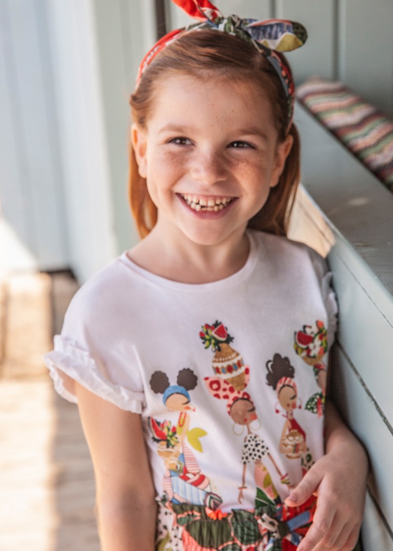 Capo ECOFRIENDS 100% cotone sostenibile Maglietta manica corta per bambina. Design stampato.
