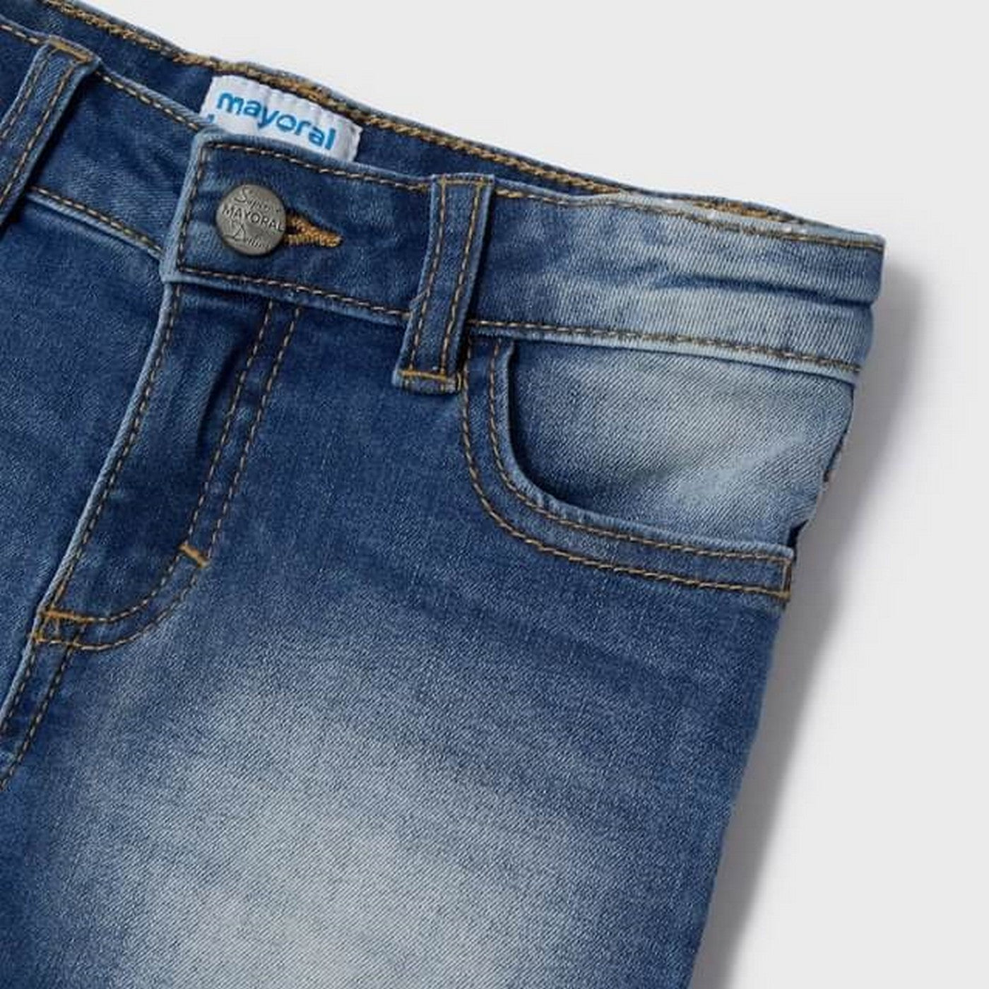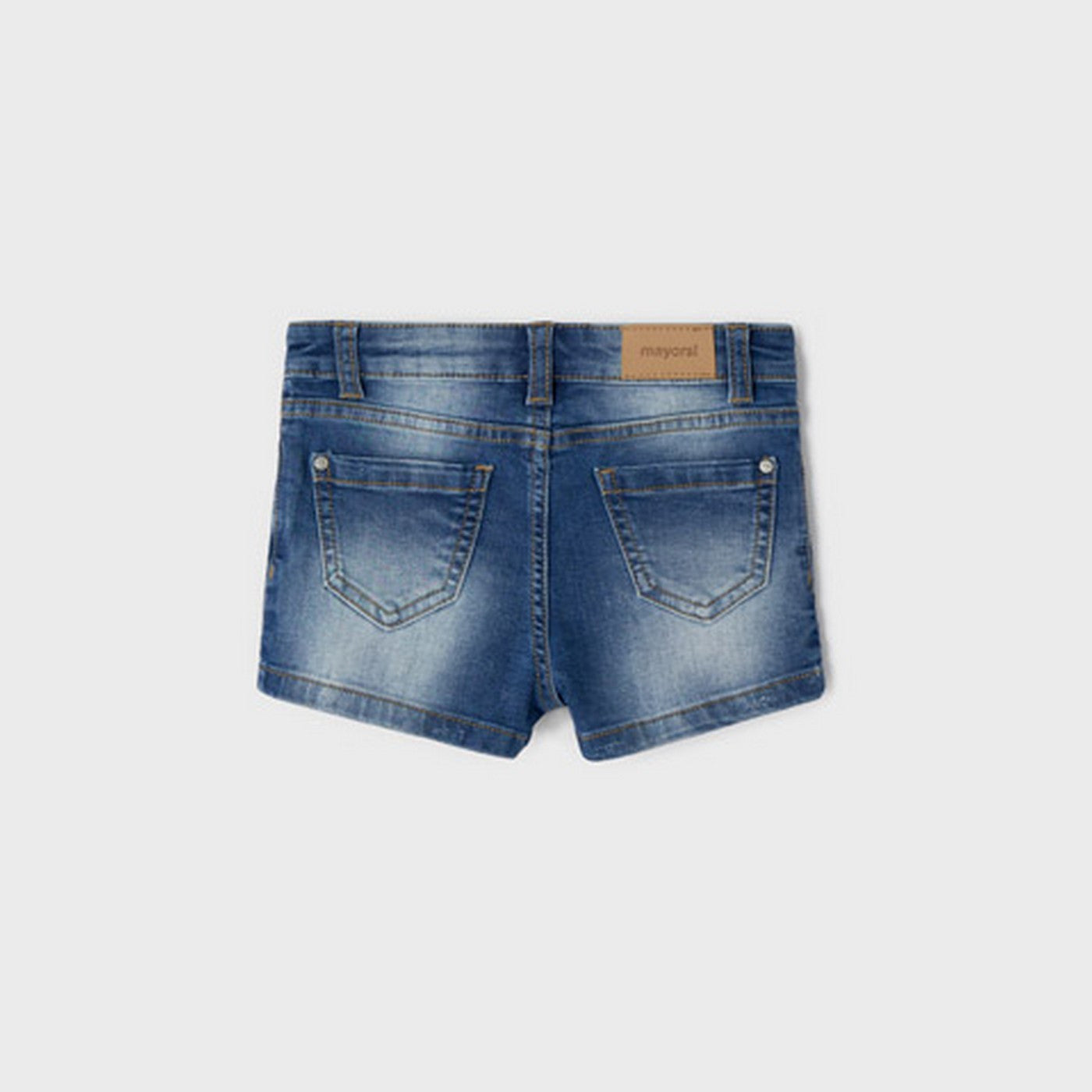 Short in denim basico, con elastico in vita per regolarne la vestibilita'.