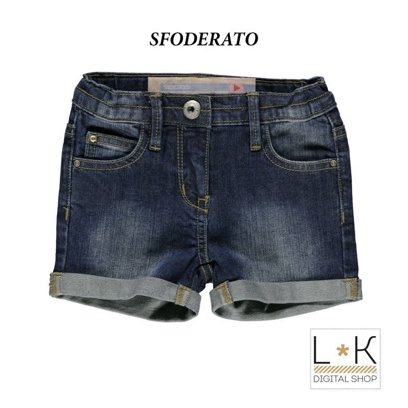 Short jeans con risvoltini, elastico in vita che permette di regolare la vestibiltà e chiusura con gancetto e zip sul davanti