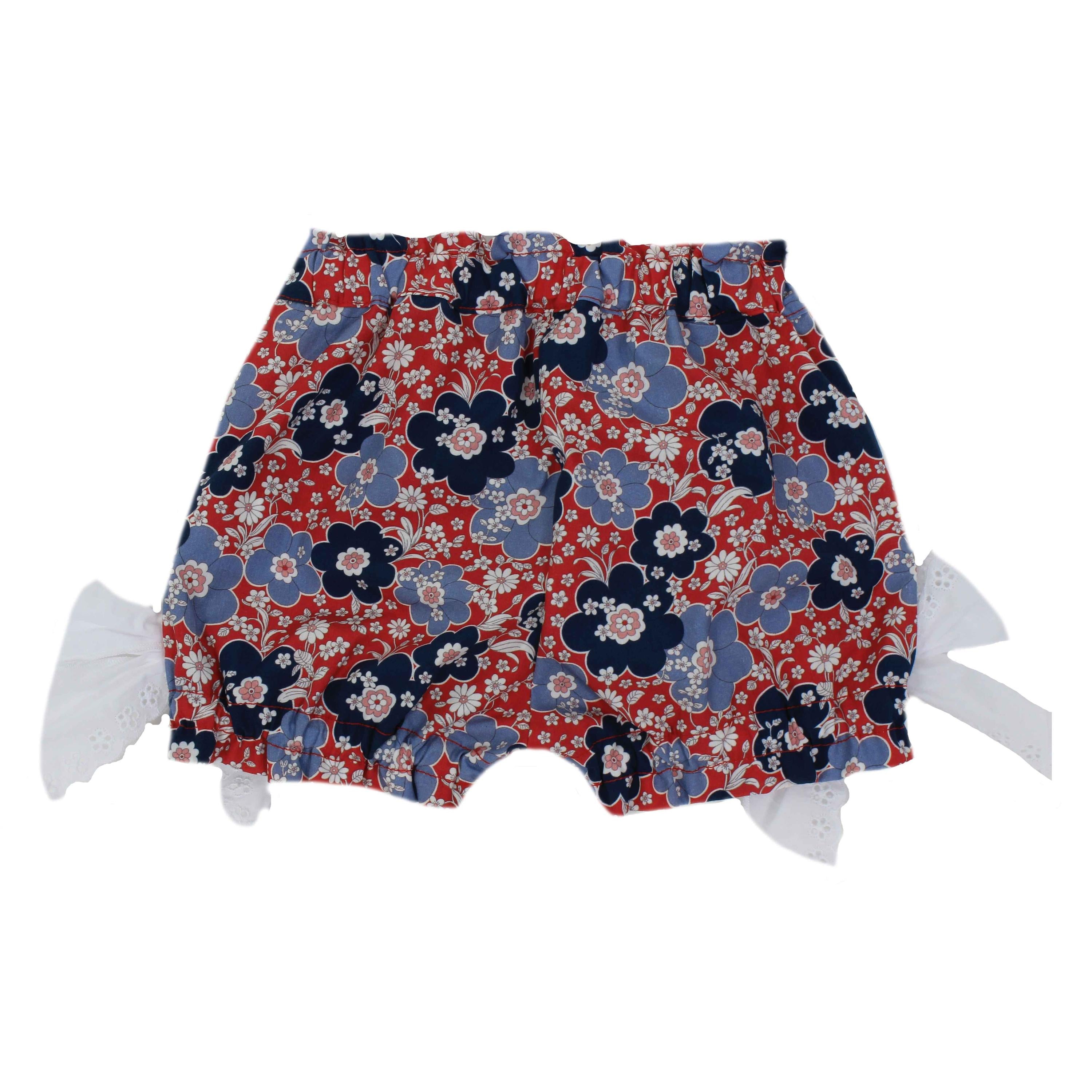 Shorts In Cotone Fantasia Floreale Con Fiocchettini in Pizzo San Gallo Laterali, Tasche Laterali ed elastico In Vita.
