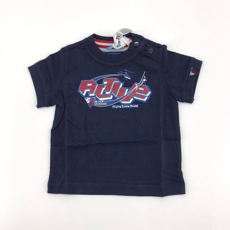 -T-Shirt in Cotone blu in tinta unita con stampa rossa e blu sul petto