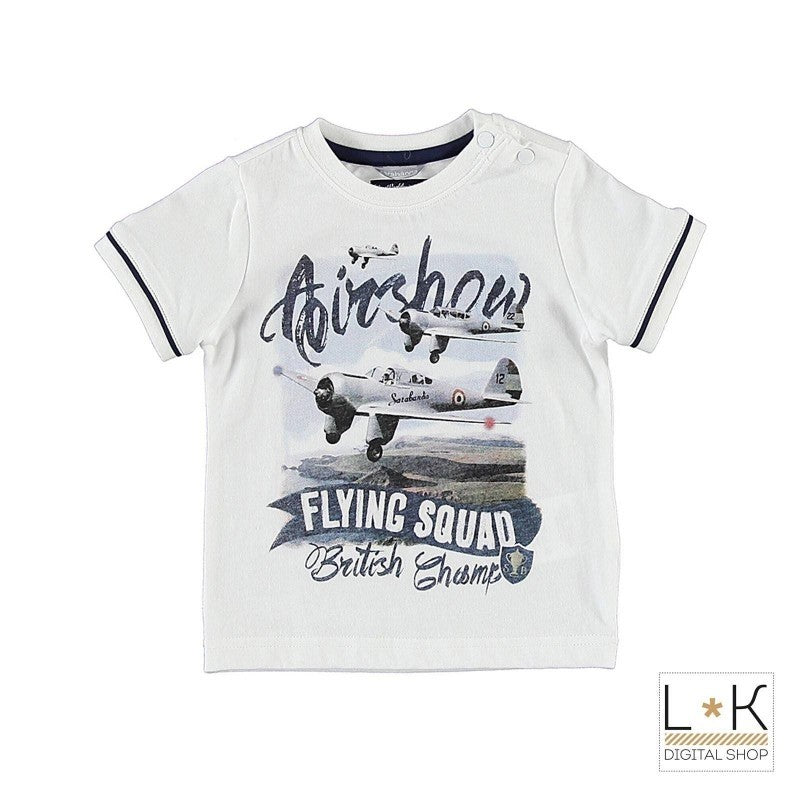 T-Shirt bianca in cotone mezza manica con e stampa sul petto di aereoplani
