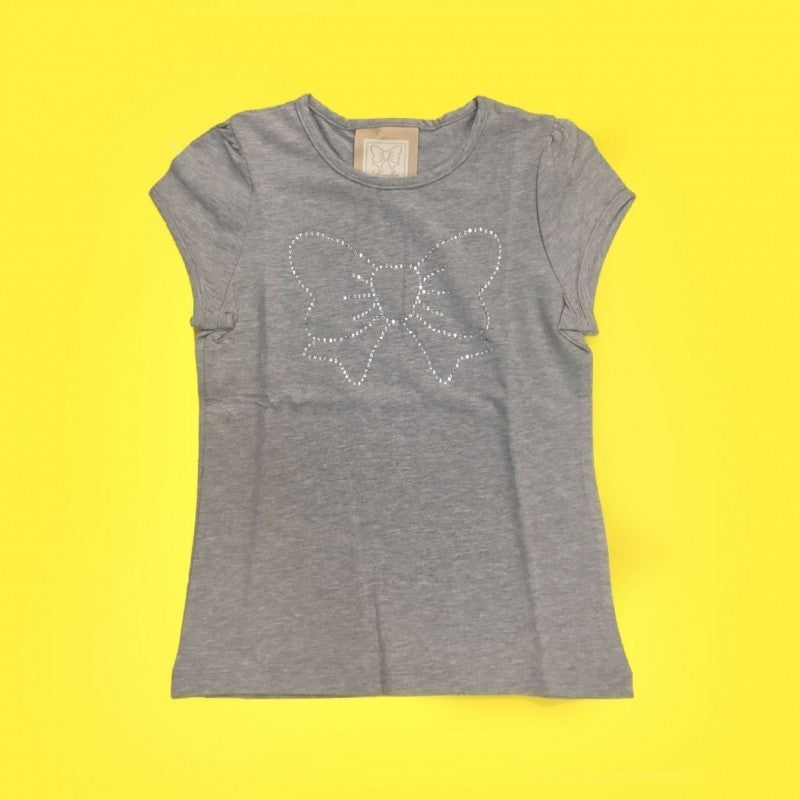 T-Shirt in cotone grigio in tinta unita e logo con applicazioni di strass sul petto