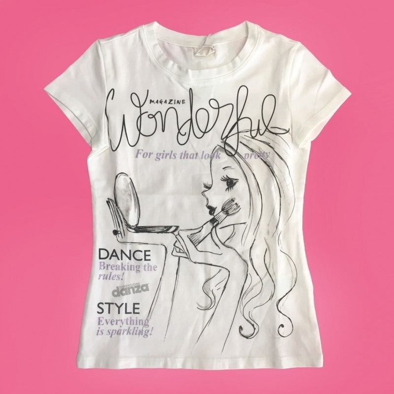 -T-Shirt in cotone bianco in tinta unita con stampa sul davanti