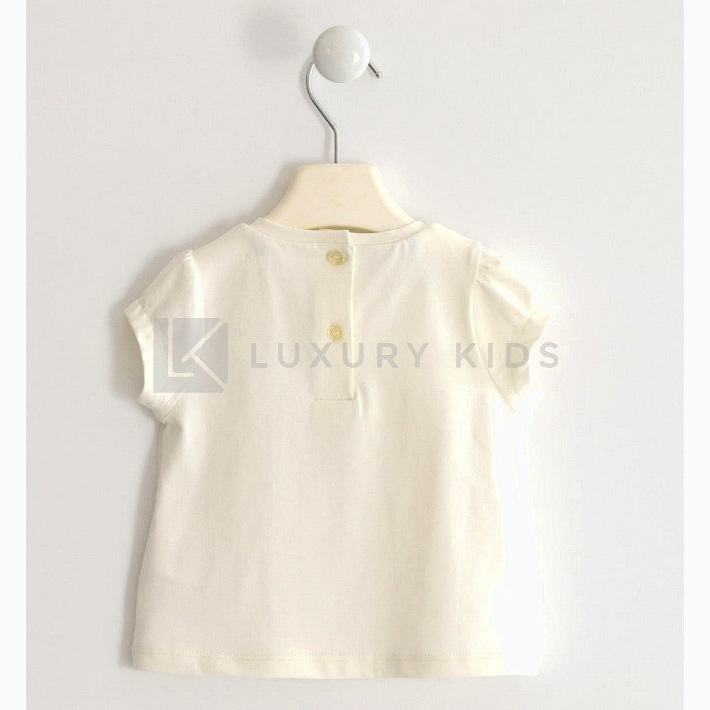 T-Shirt Mezza Manica In Cotone Elasticizzato Panna Neonata SARABANDA J213
